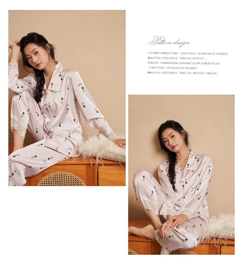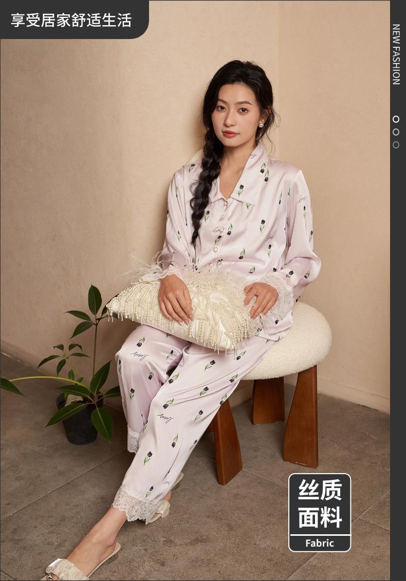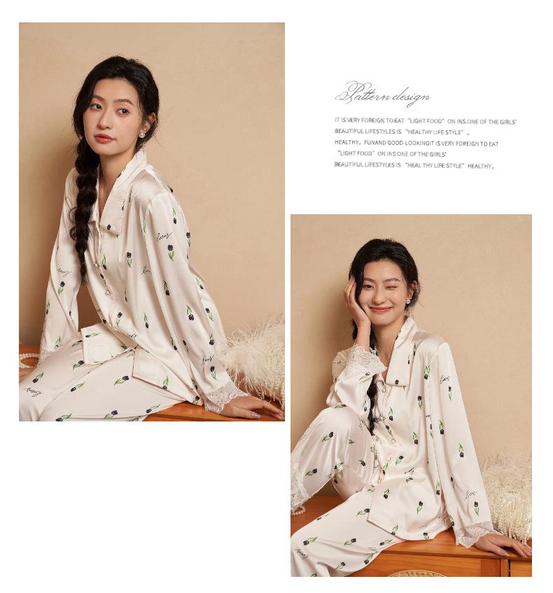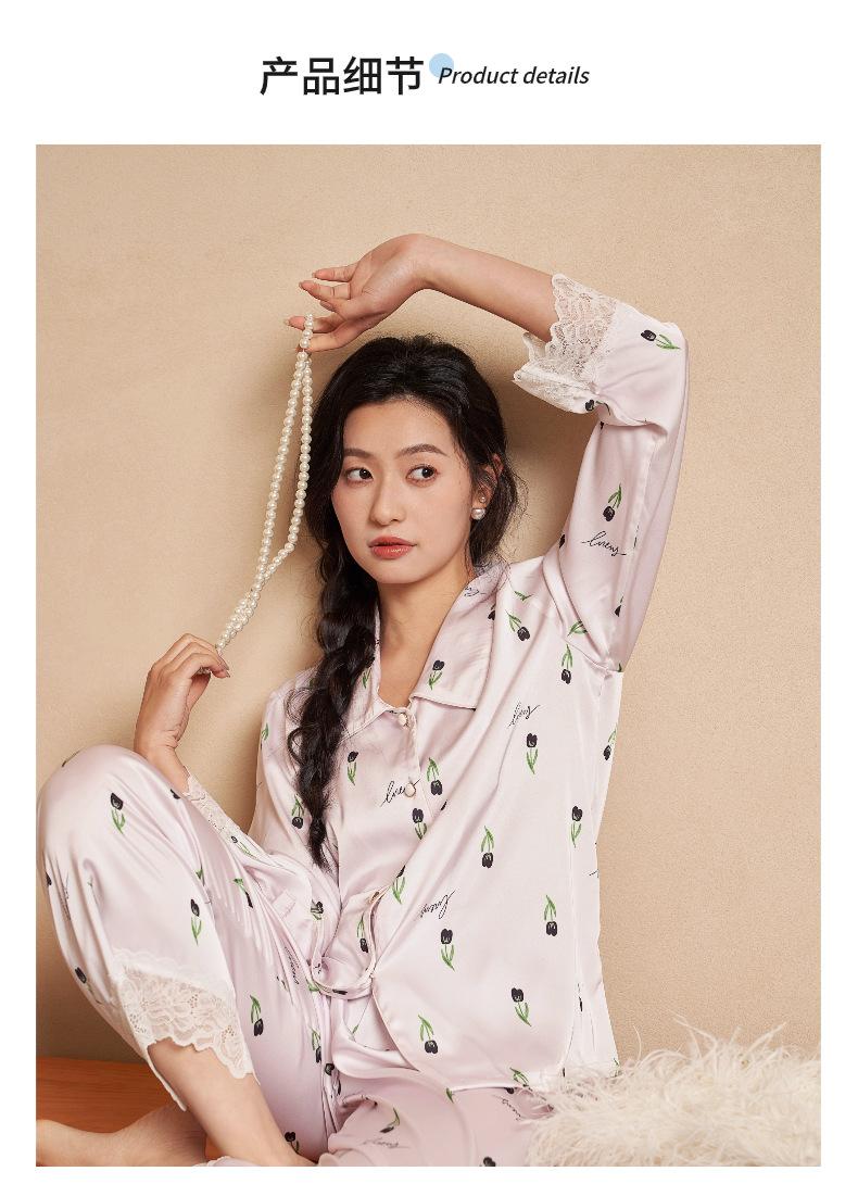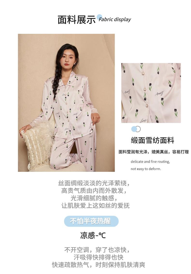 Pijamas de seda para mujer, primavera y verano, nuevo traje de tulipán de seda con flores frescas, estilo pastoral, ropa de alta gama para el hogar.
