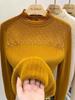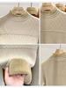 Suéter de cachemira de una pieza grueso para mujer, camisa base con forro polar para otoño e invierno, suéter interior de encaje de cuello medio alto para mujer, parte superior cálida