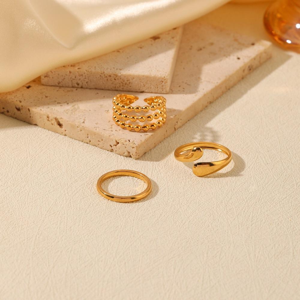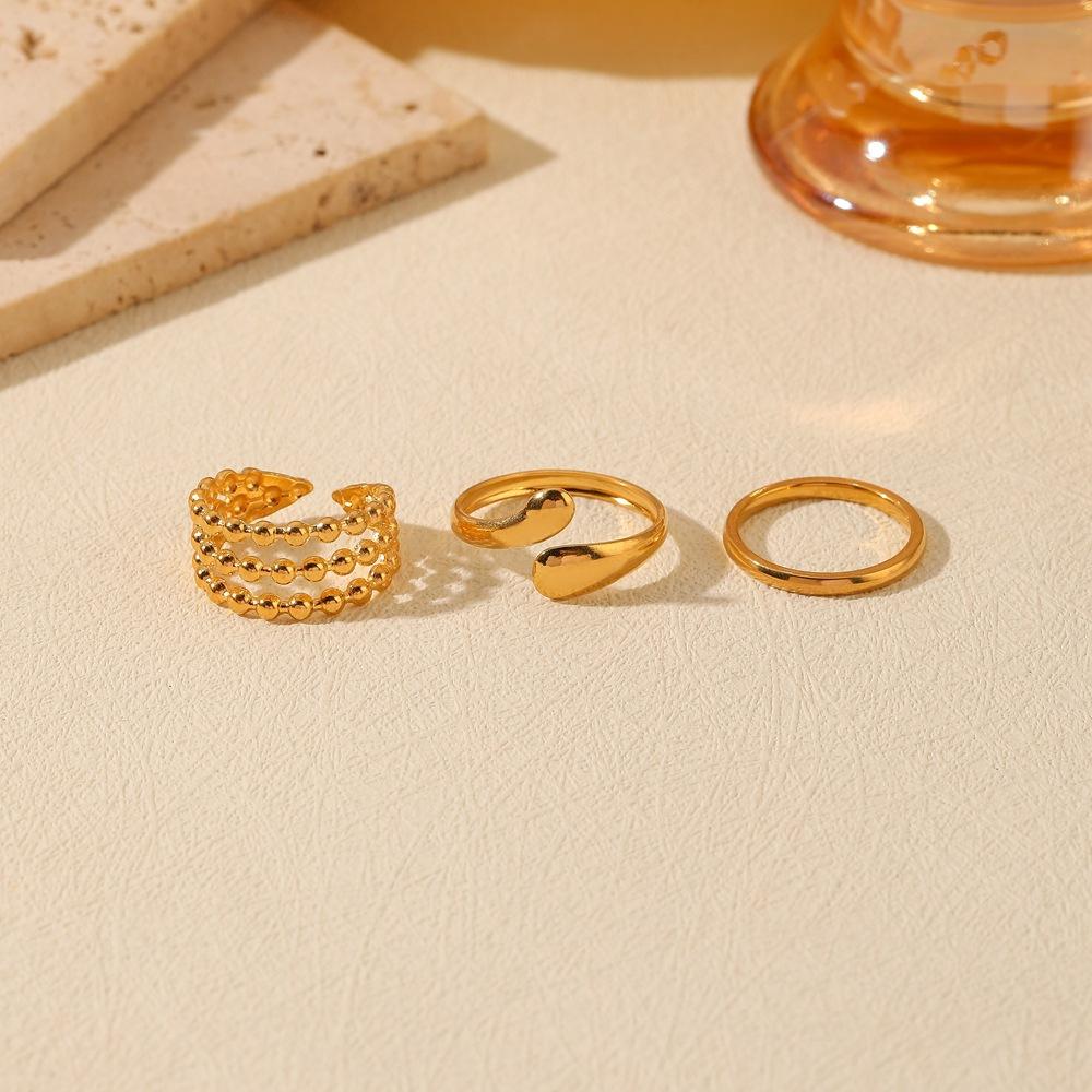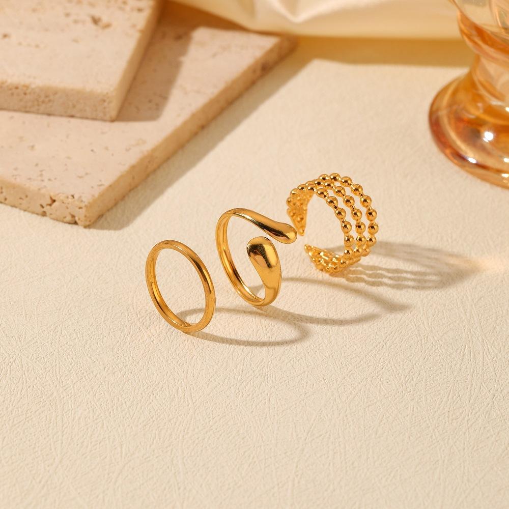 Moda de Lujo Ligero Personalizado Combinable Acero Inoxidable Dorado Anillo Abierto Ajustable de Gota de Agua Juego de Tres Piezas