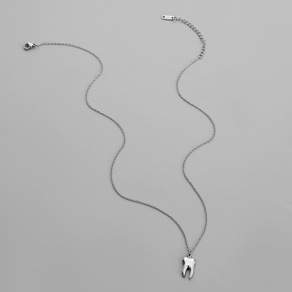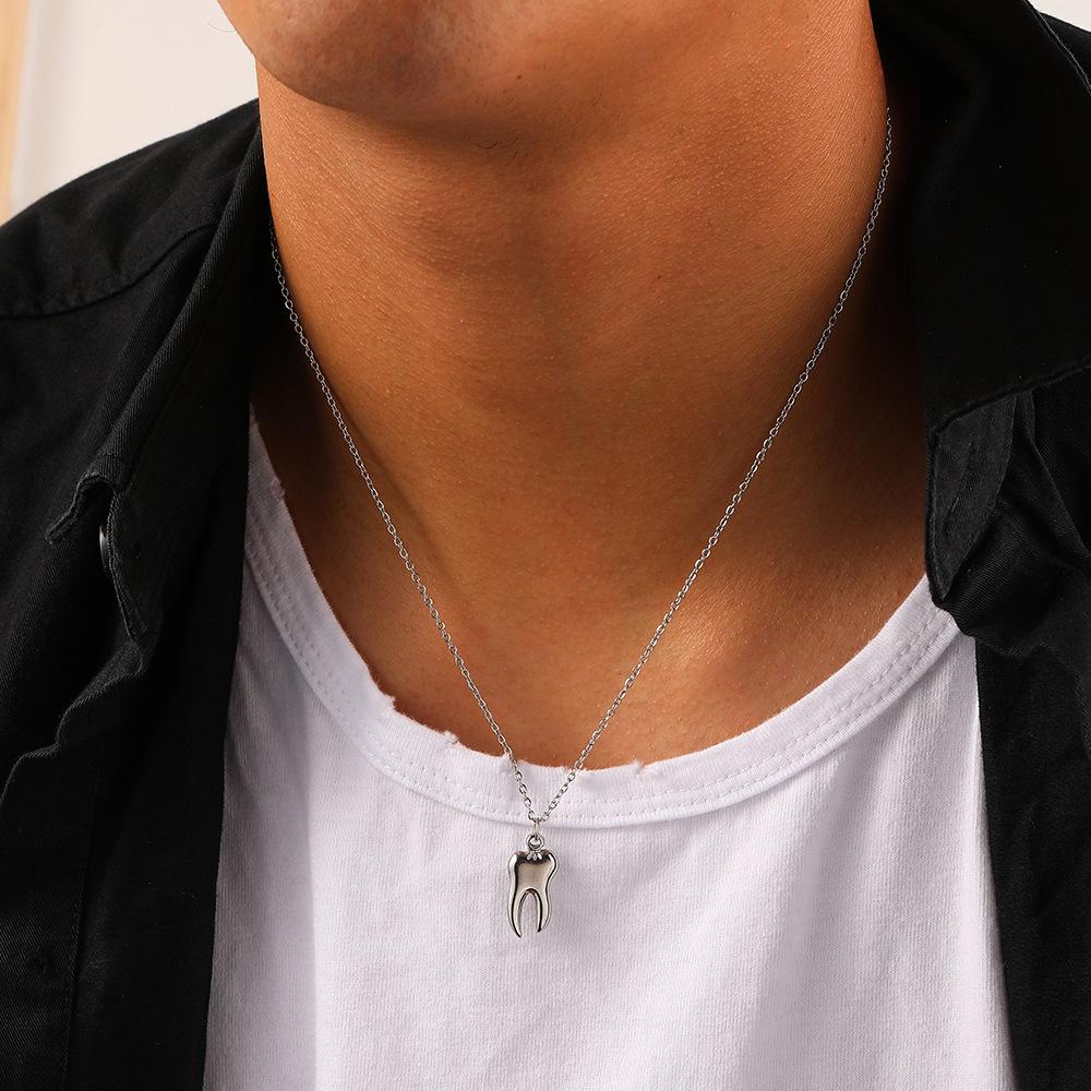Collar de cadena simple con colgante de diente personalizado con diseño de nicho de acero inoxidable para hombre, el más vendido de moda europea y americana