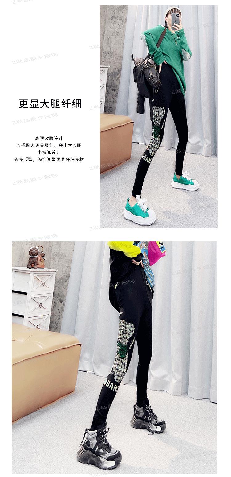 2025 Primavera y Otoño Industria Pesada Diamante Caliente Estilo Europeo Ropa Exterior Leggings para Mujer Algodón Puro Elástico Cintura Alta Pantalones Skinny Moda Pantalones Ajustados
