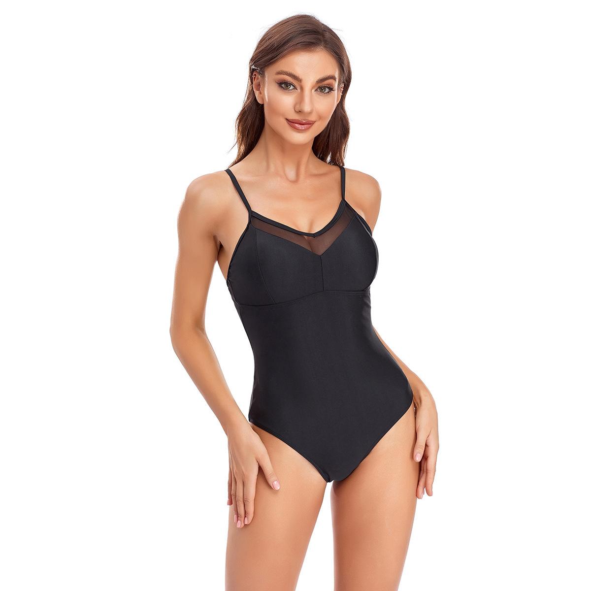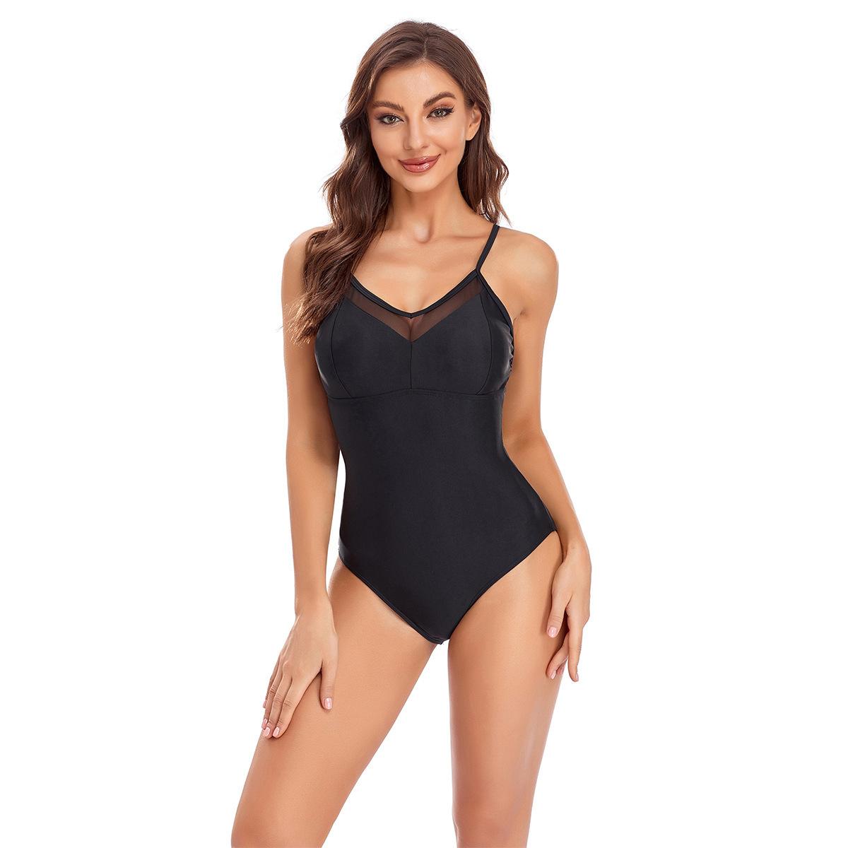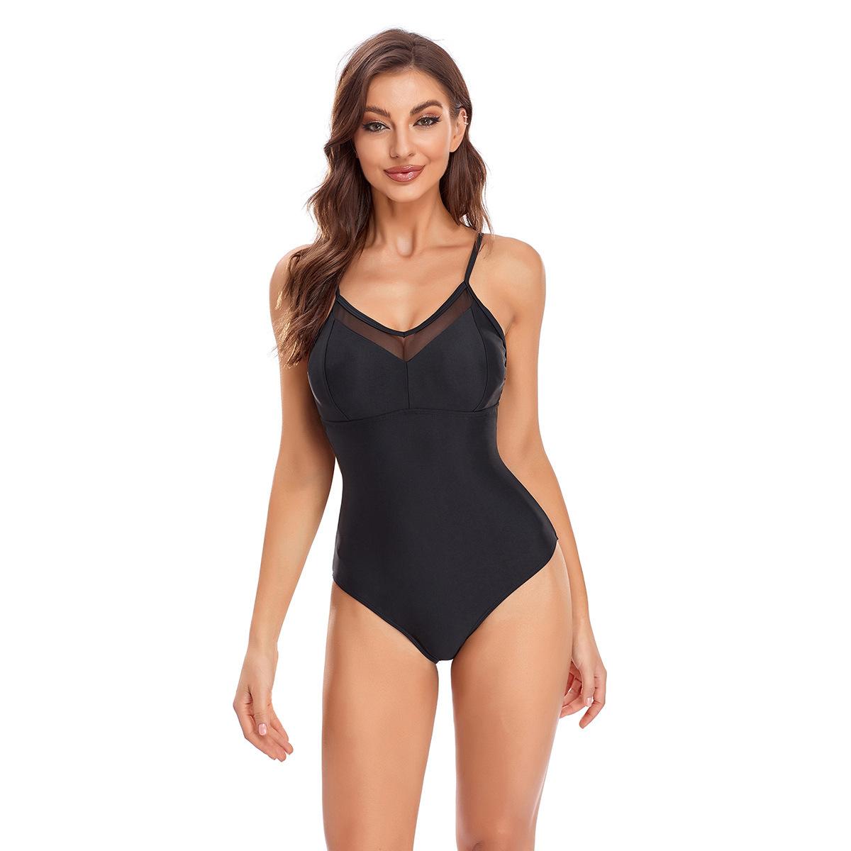 Traje de baño europeo y americano nuevo de una pieza para mujer color sólido sexy tirantes espalda descubierta talla grande bikini traje de baño para mujer traje de baño
