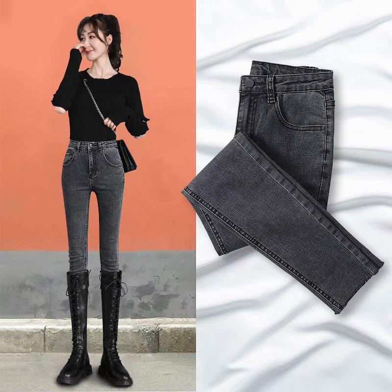 Pantalones vaqueros elásticos de otoño para mujer, nuevos, de cintura alta, ajustados, ajustados, de estilo coreano, de tubo.