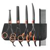 Tijeras para mascotas de color negro y naranja, juego de cortadores de belleza, herramienta de peluquería para perros y gatos, tijeras de corte curvo hacia arriba y hacia abajo, cortador de dientes planos