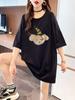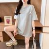 Camiseta de verano para mujer, de algodón puro, estilo coreano, con estampado de letras a la moda, de manga corta, holgada, combinable, de longitud media, elegante.
