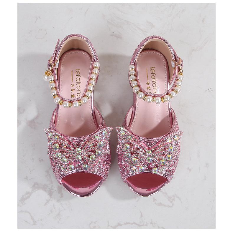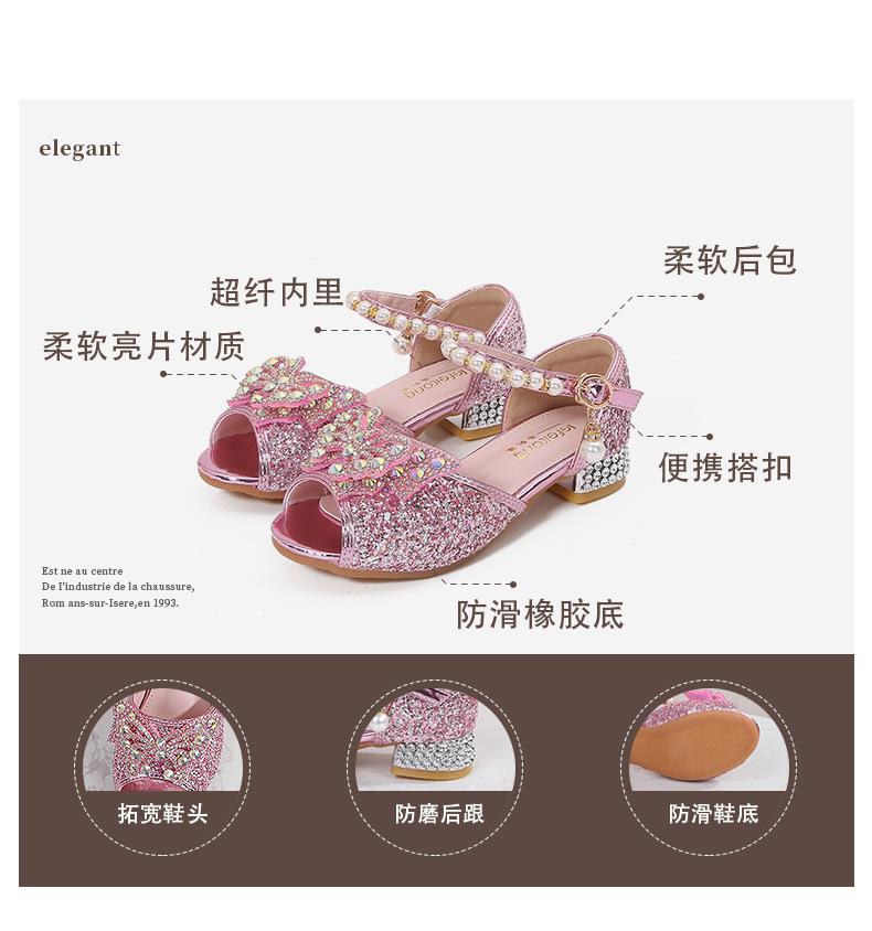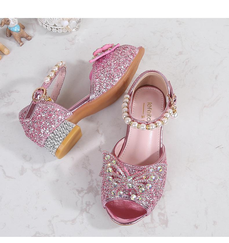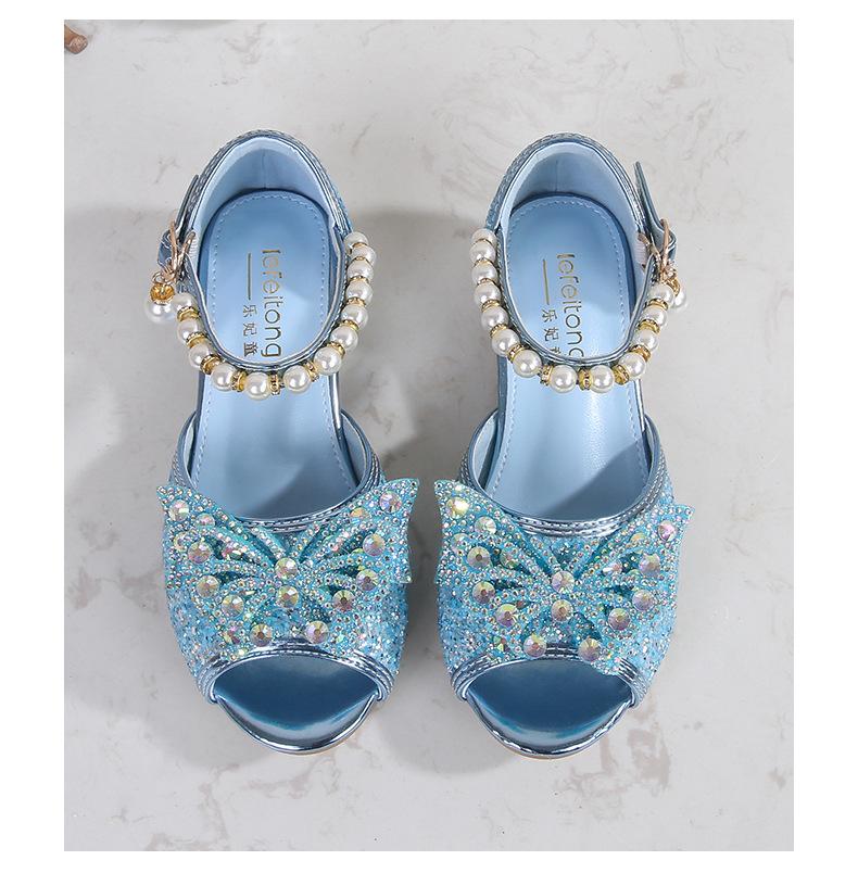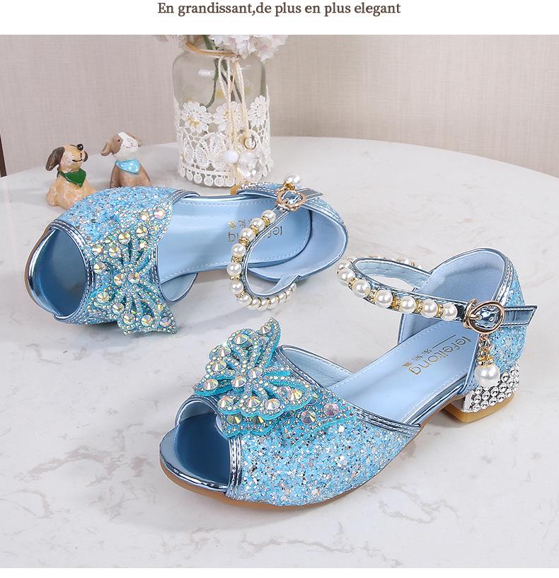 Sandalias para niñas 2025, nuevas sandalias de verano con diseño de boca de pez y princesas, zapatos de tacón alto para niñas, zapatos Aisha Frozen