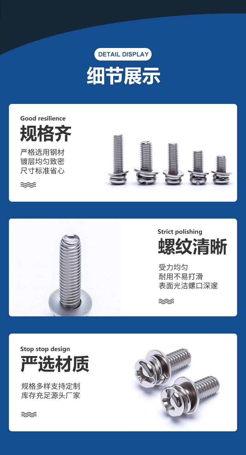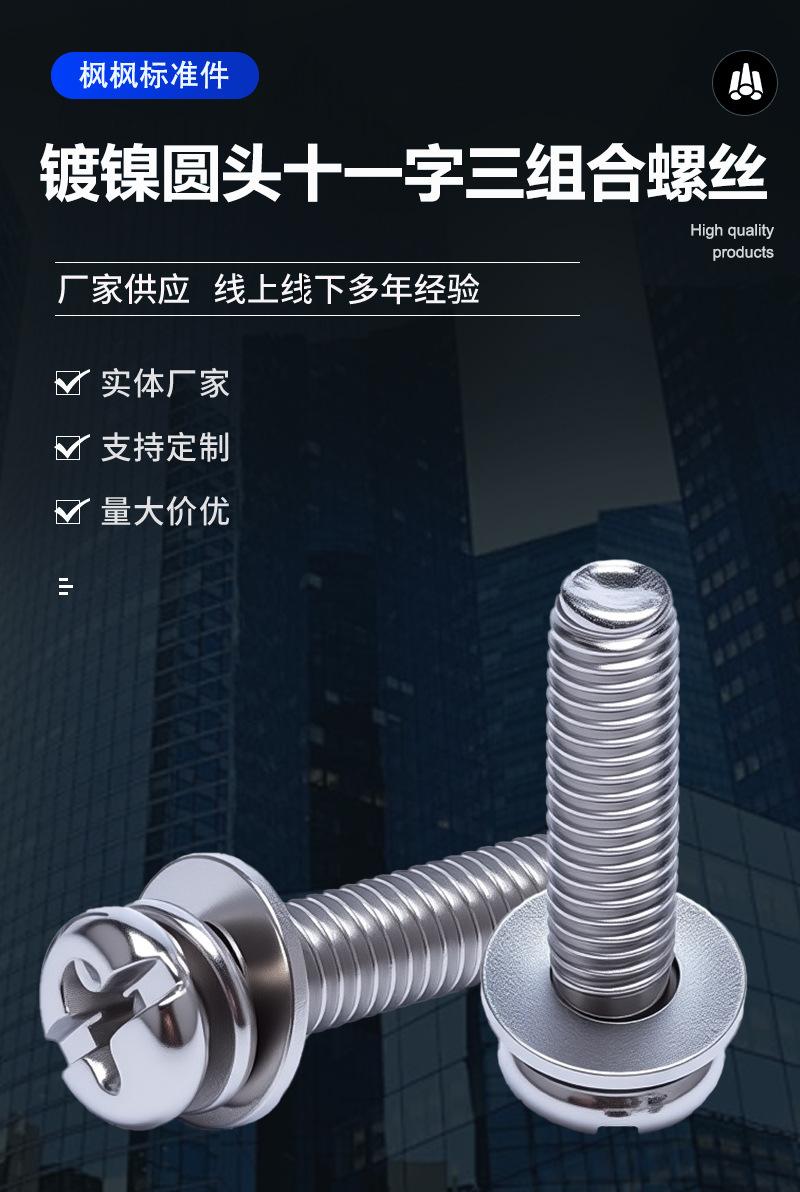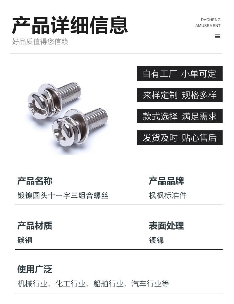 Tornillo de Combinación Once Tres de Cabeza Redonda Niquelado Cabeza Pequeña de Bandeja con Arandela Combinación de Tornillos M2.5M3M4M5M6