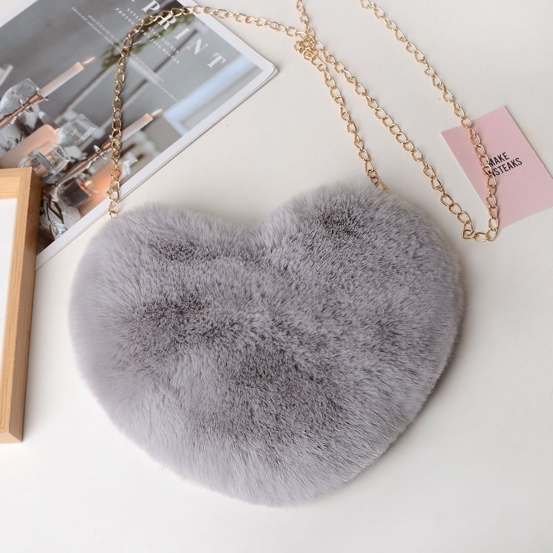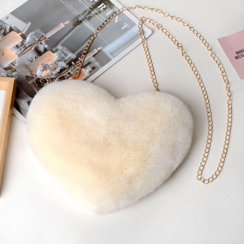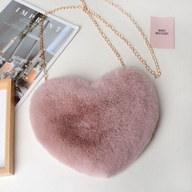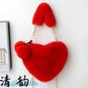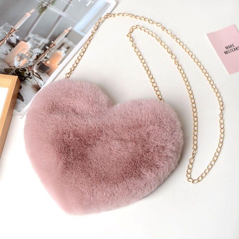 Nuevo Bolso de Felpa en Cadena con Forma de Corazón para el Día de San Valentín, Bolso con Forma de Corazón Melocotón, Lindo Versátil Cadena Cruzada Bolso Pequeño