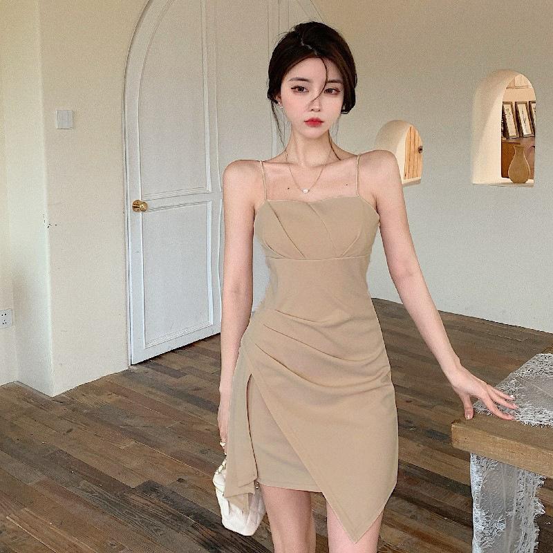 Vestido de tirantes sexy retro francés sin mangas, nueva falda corta adelgazante de cintura para primavera 2024, moda femenina