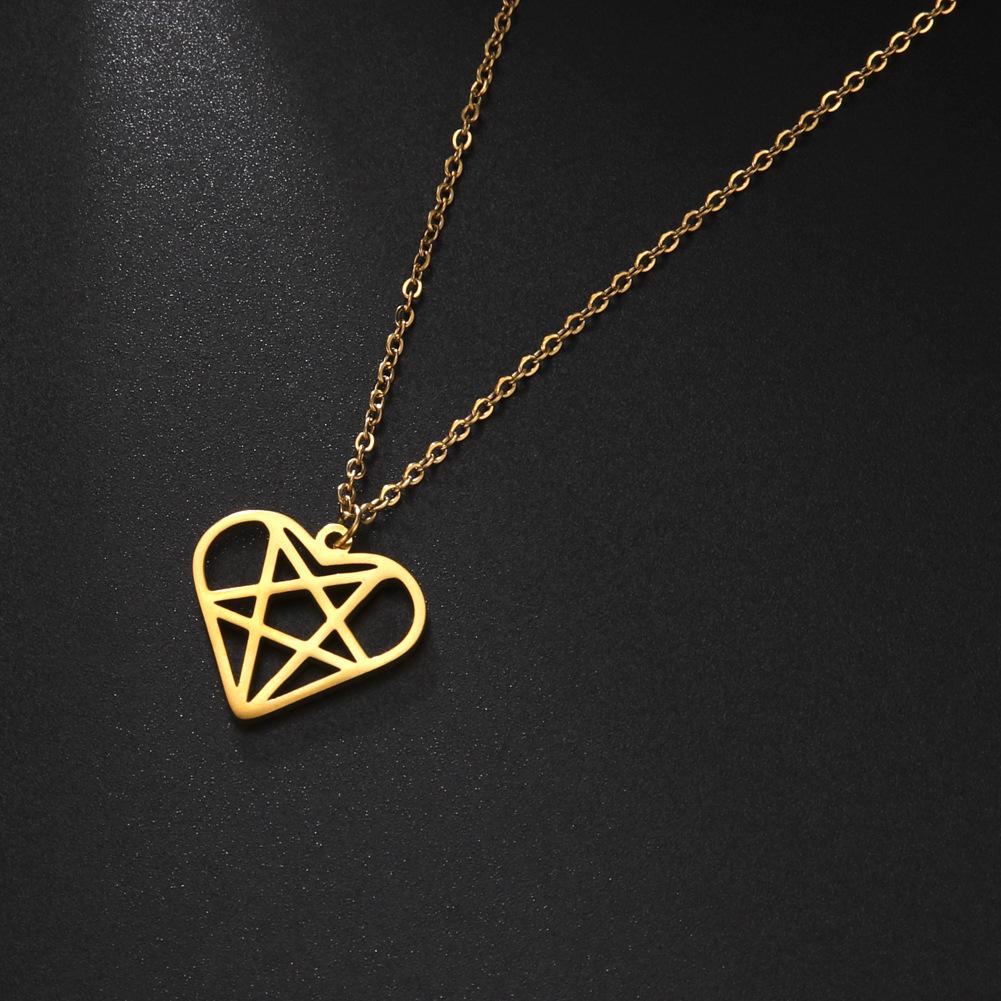 Venta caliente entre Europa y Estados Unidos, colgante de estrella de cinco puntas con forma de corazón hueco, collar de acero de titanio, cadena de clavícula de acero inoxidable, regalo de San Valentín