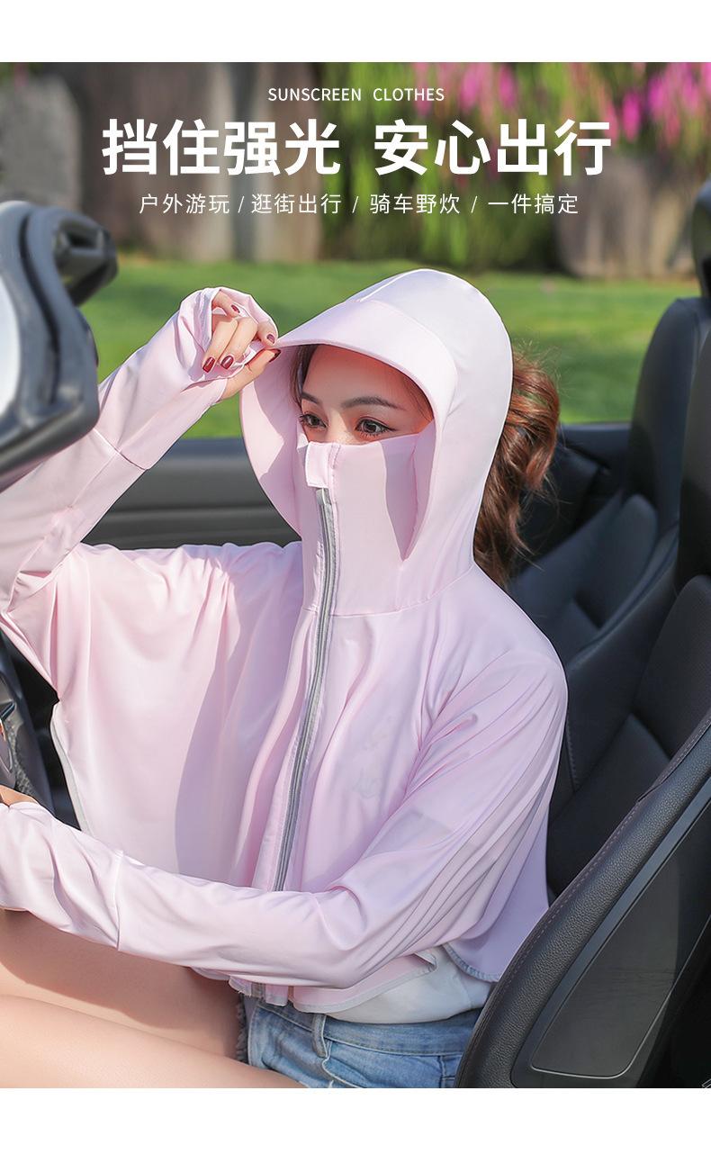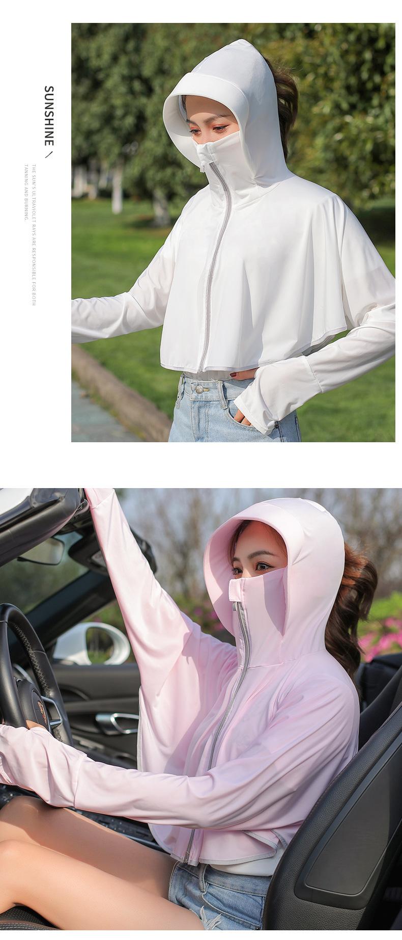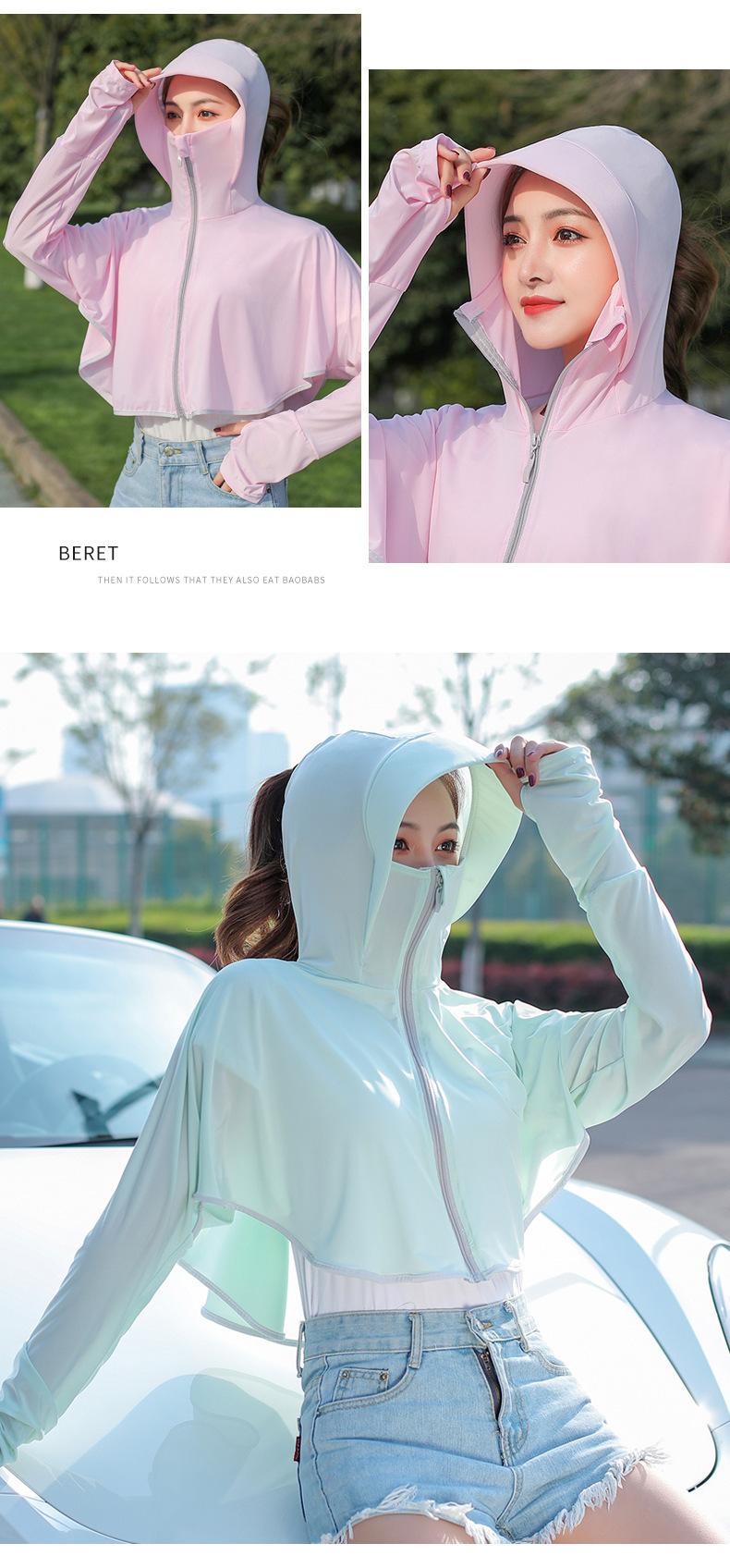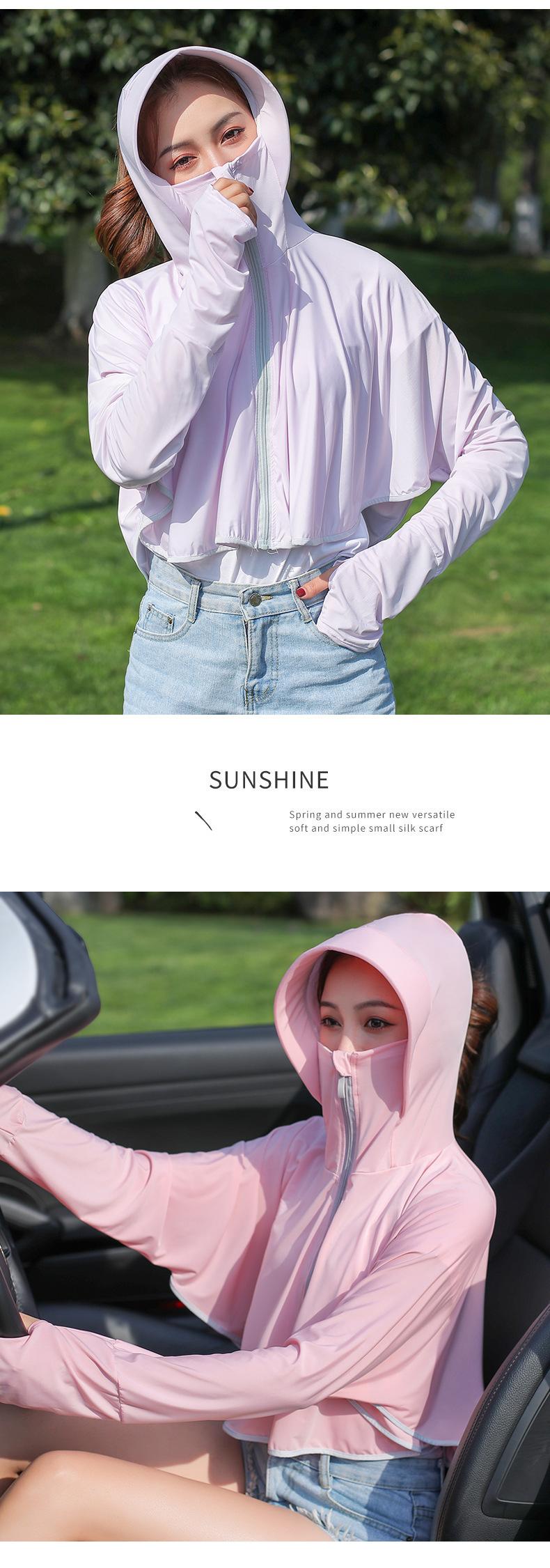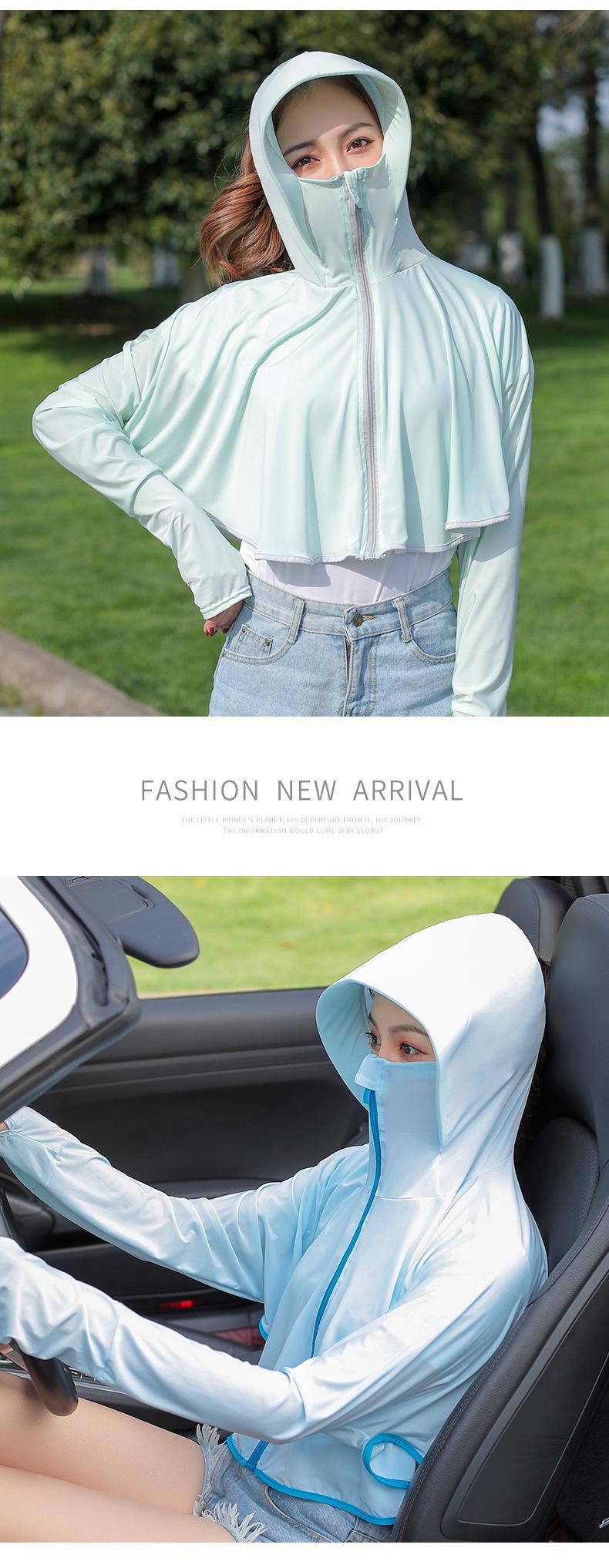 Nueva ropa de protección solar de verano para mujer, con capucha de seda helada, ropa de ciclismo transpirable, ropa de exterior de color sólido, venta al por mayor
