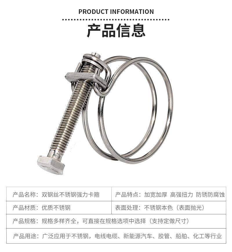 Abrazadera de tubo de acero inoxidable 201 con doble alambre de acero, abrazadera resistente 304, abrazadera de tubo de agua, abrazadera de tubo de goma