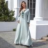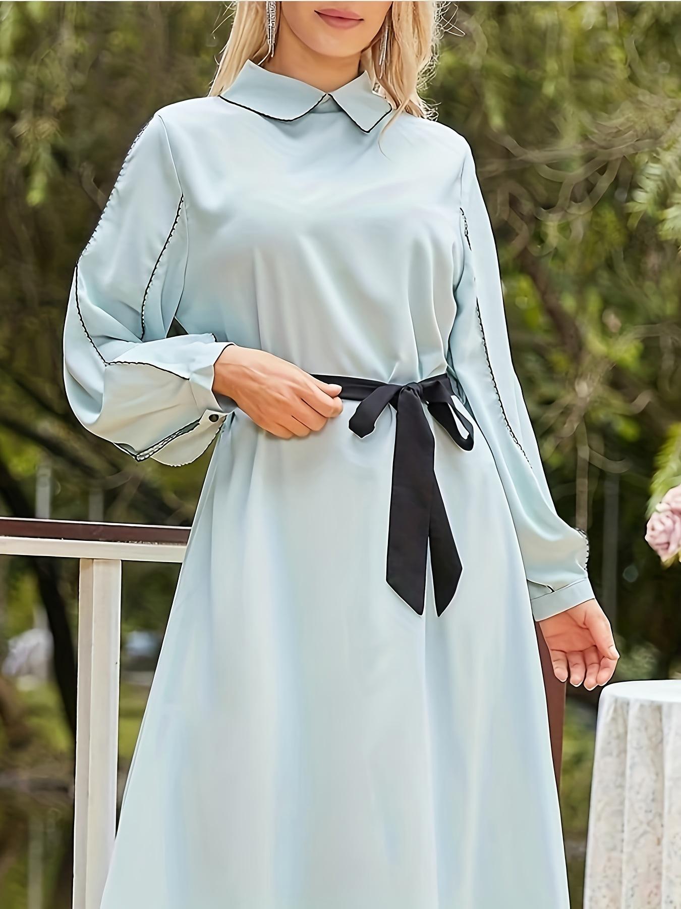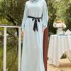 Vestido Largo Elegante con Lazo, Borde Negro, de Venta Caliente, Toma Real Transfronteriza, Falda Larga de Oriente Medio, Precio de Liquidación Negociable