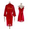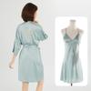 Vestido de novia, vestido de mañana, camisón de dama, maquillaje de boda, dama de honor, grupo de boda, kimono, bata de satén de seda hielo.