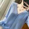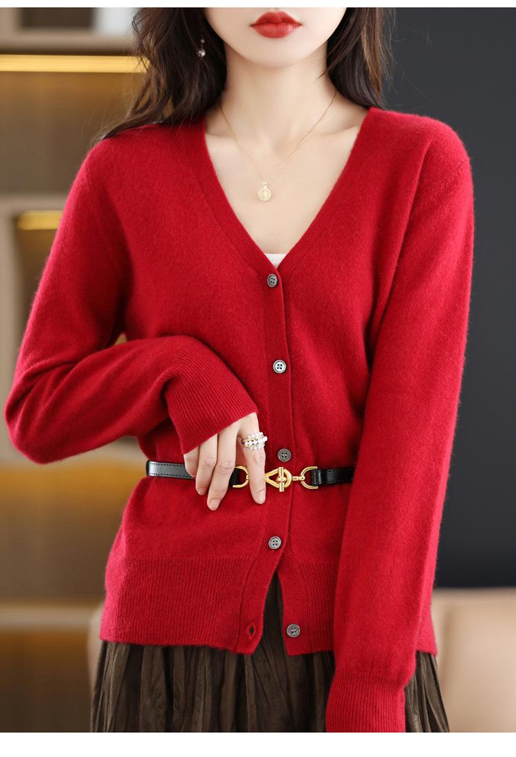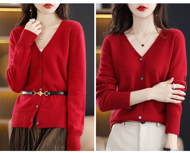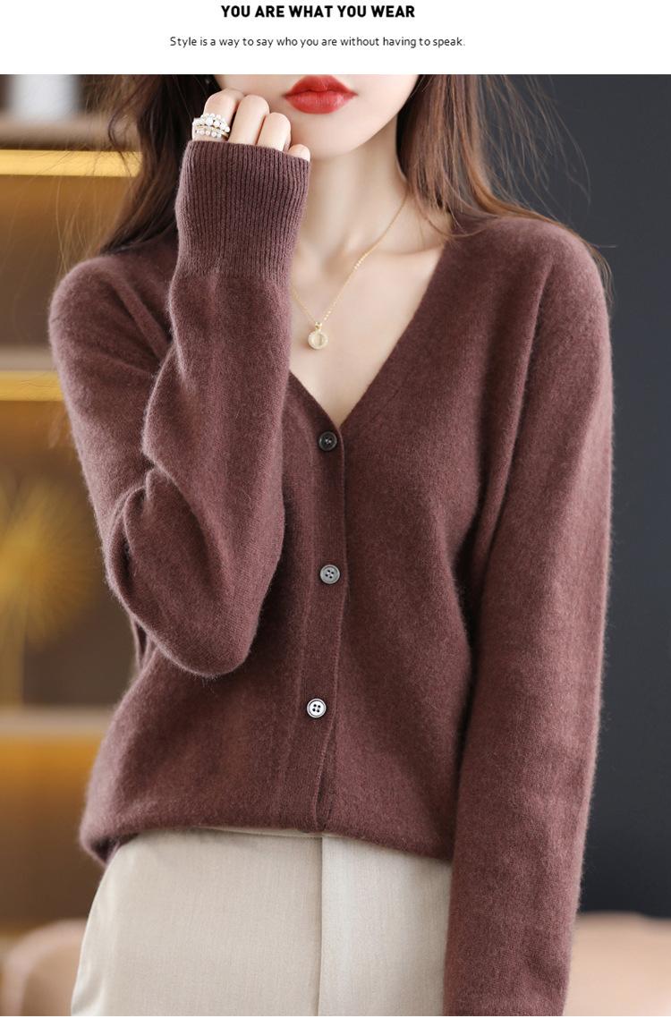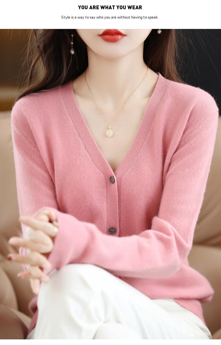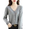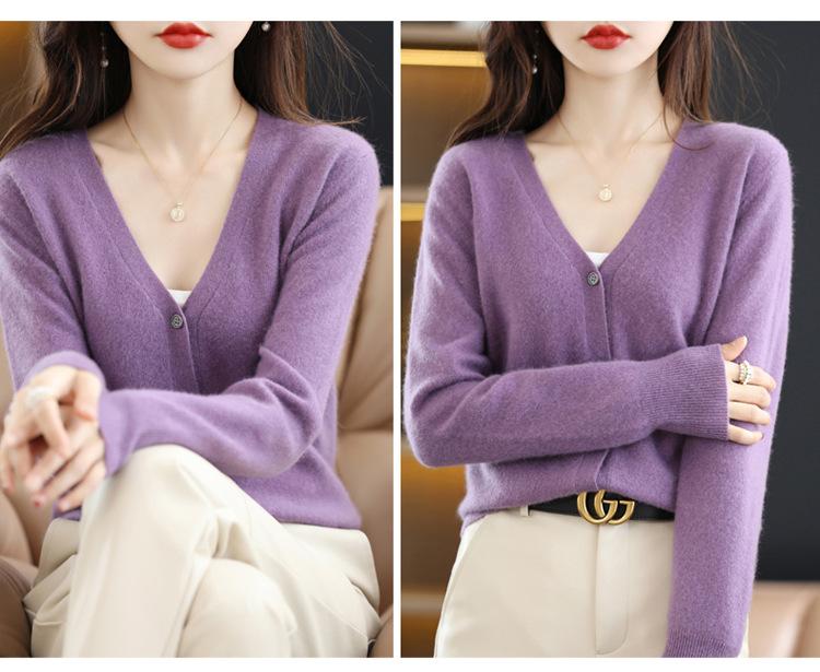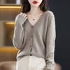 Suéter de lana confeccionado de primera línea, cárdigan de punto para mujer, chaqueta de suéter delgada, otoño e invierno, parte inferior de cuello redondo, manga larga, parte superior suelta