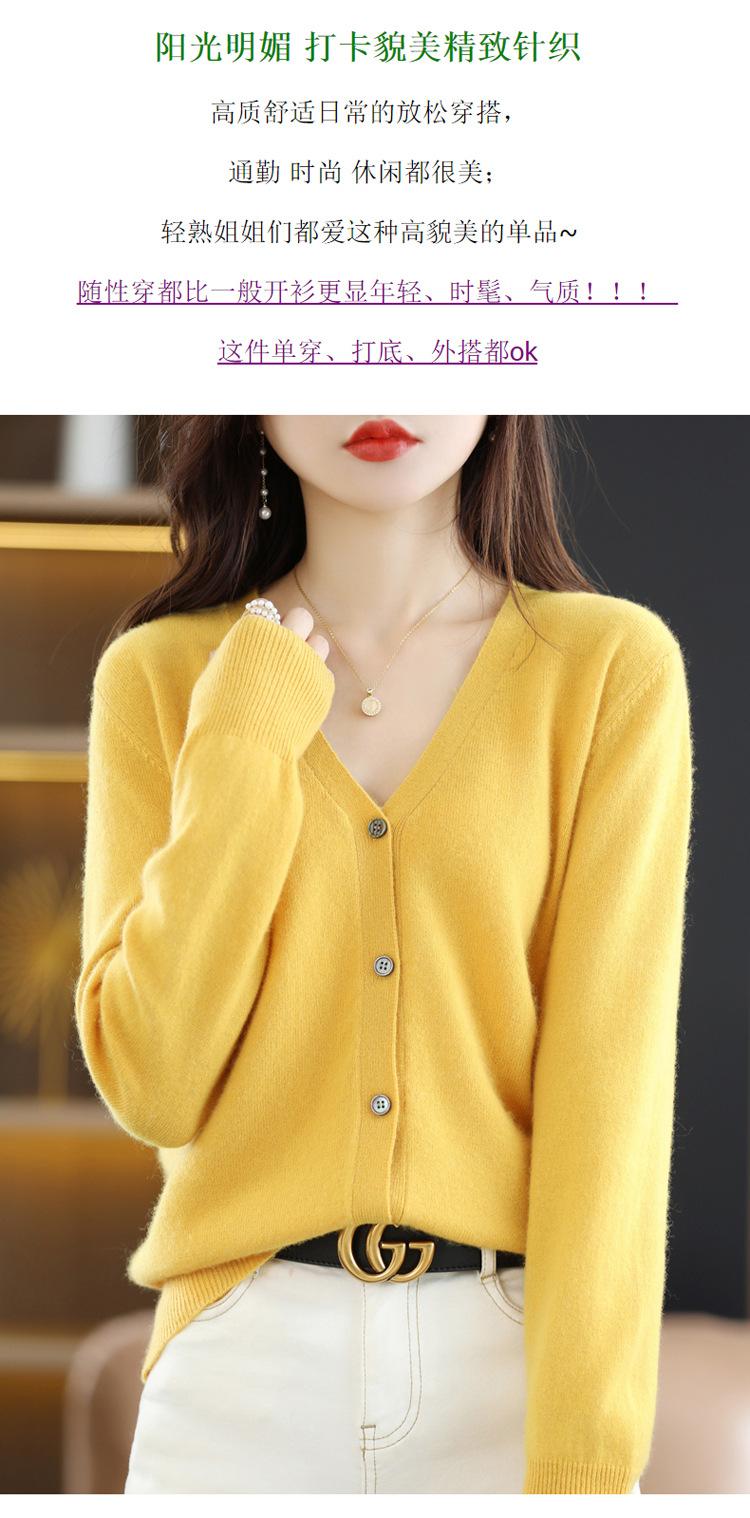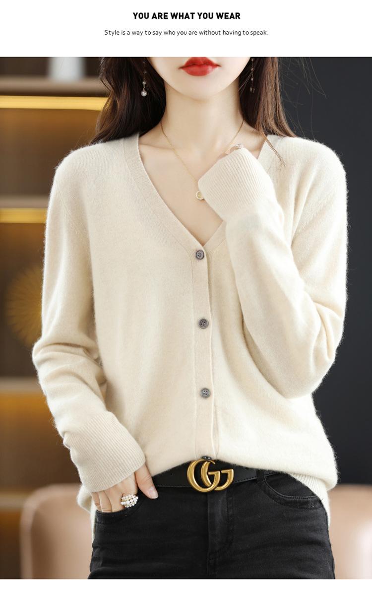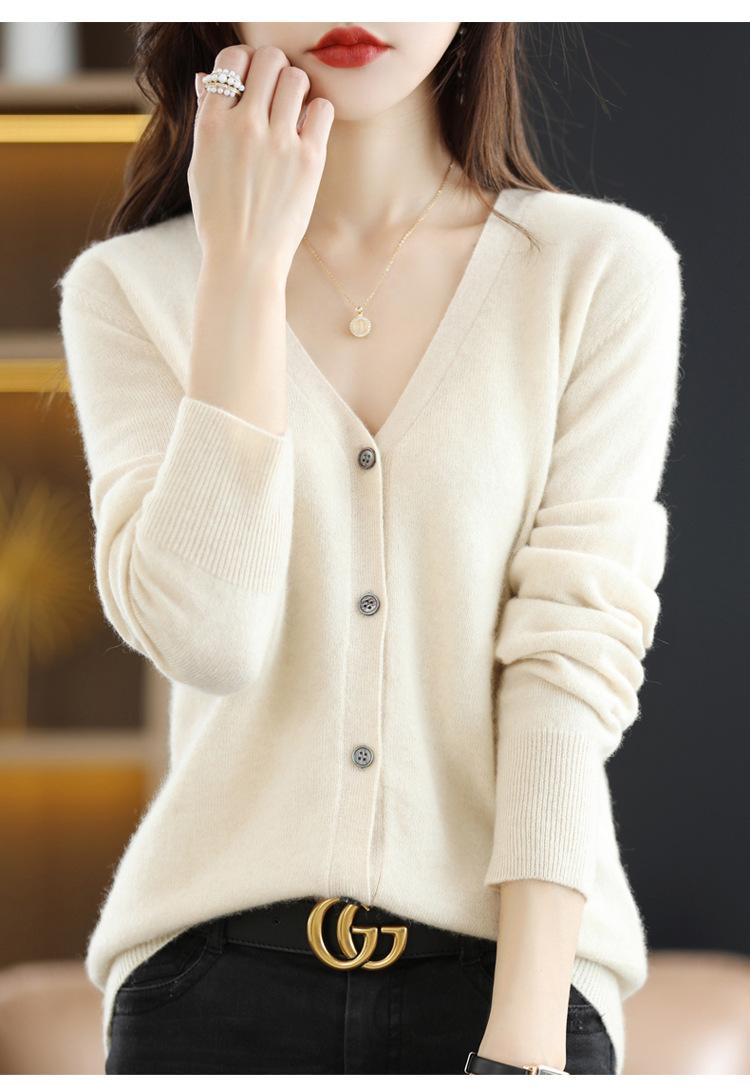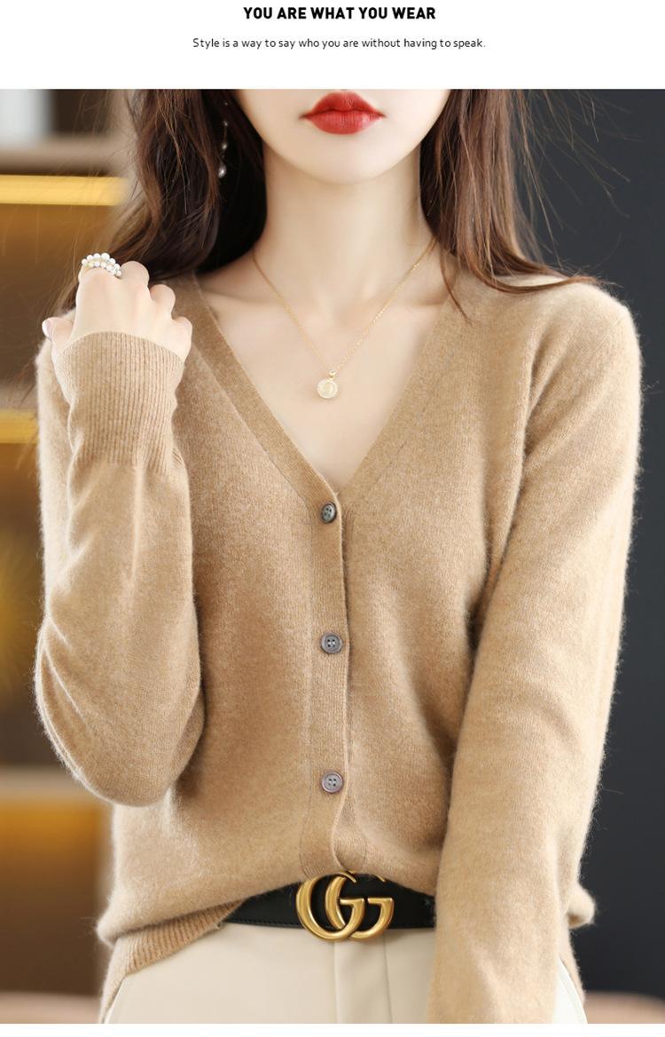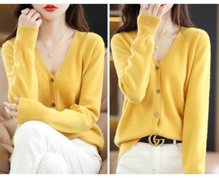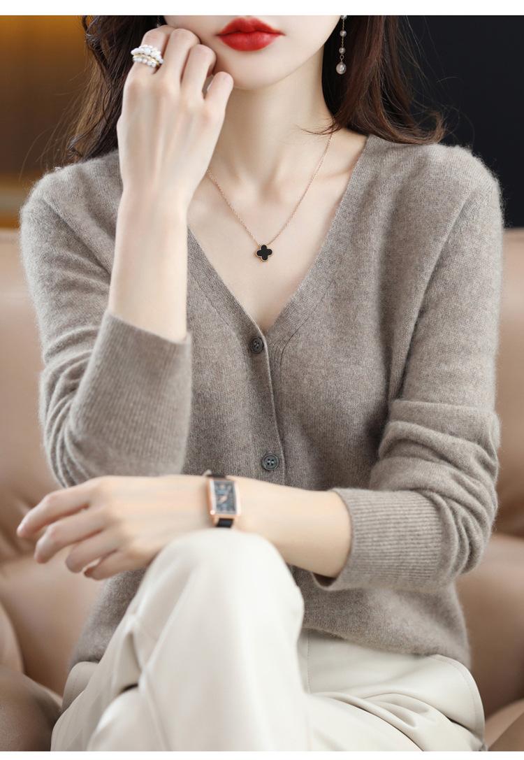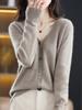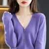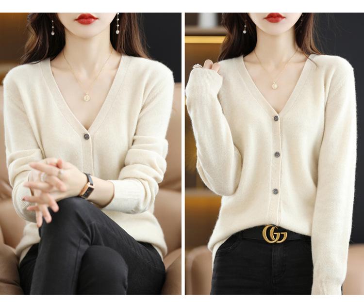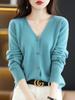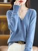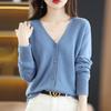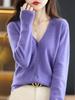 Suéter de lana confeccionado de primera línea, suéter de base de lana 100 para mujer, suéter de cachemira suelto de punto con cuello en V, top ajustado para otoño e invierno