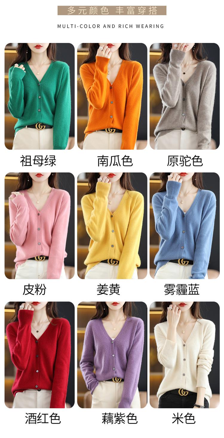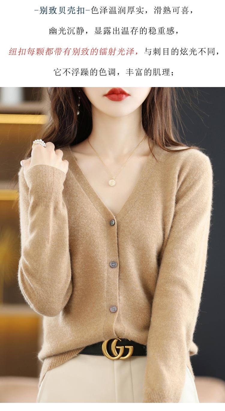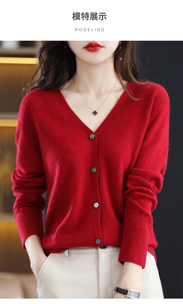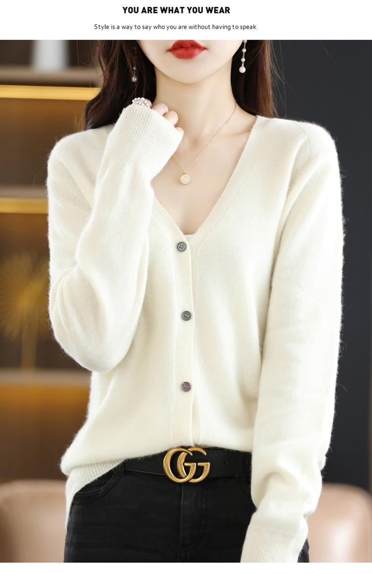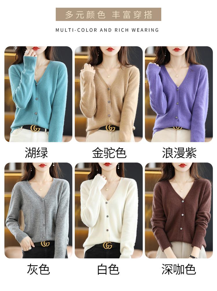 Suéter de lana confeccionado de primera línea, suéter de base de lana 100 para mujer, suéter de cachemira suelto de punto con cuello en V, top ajustado para otoño e invierno