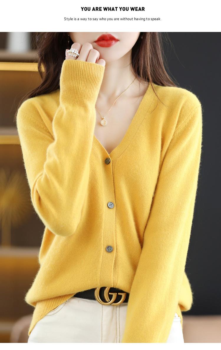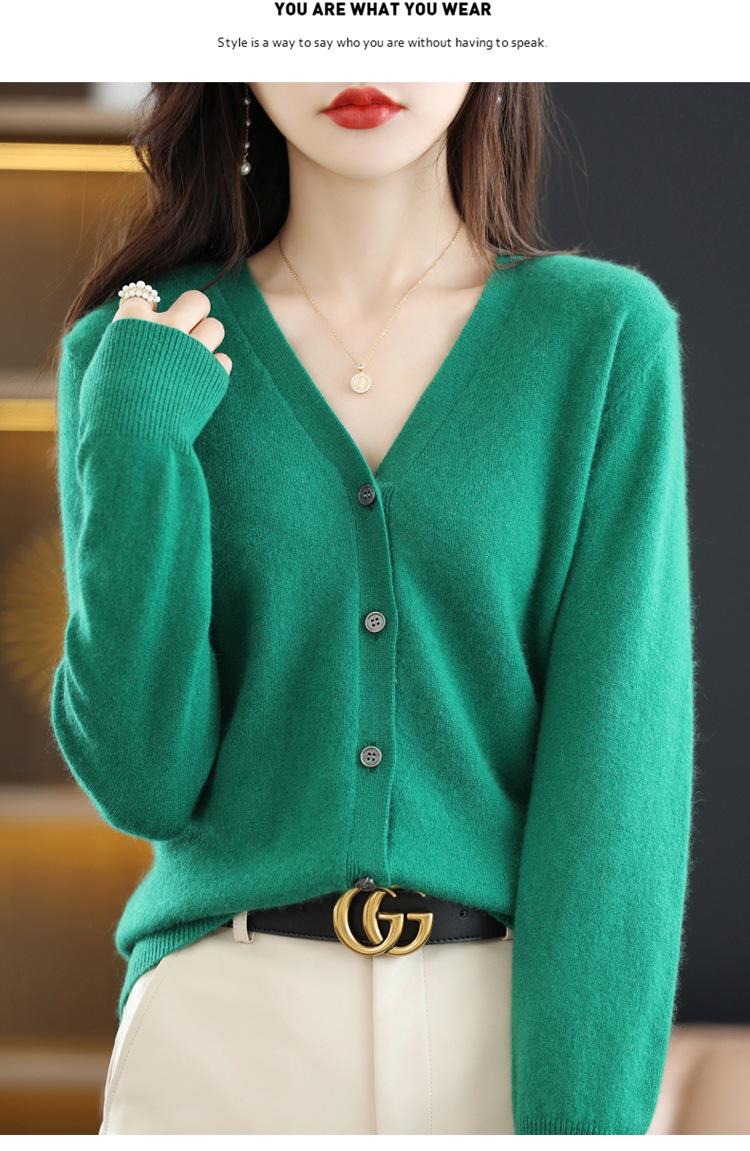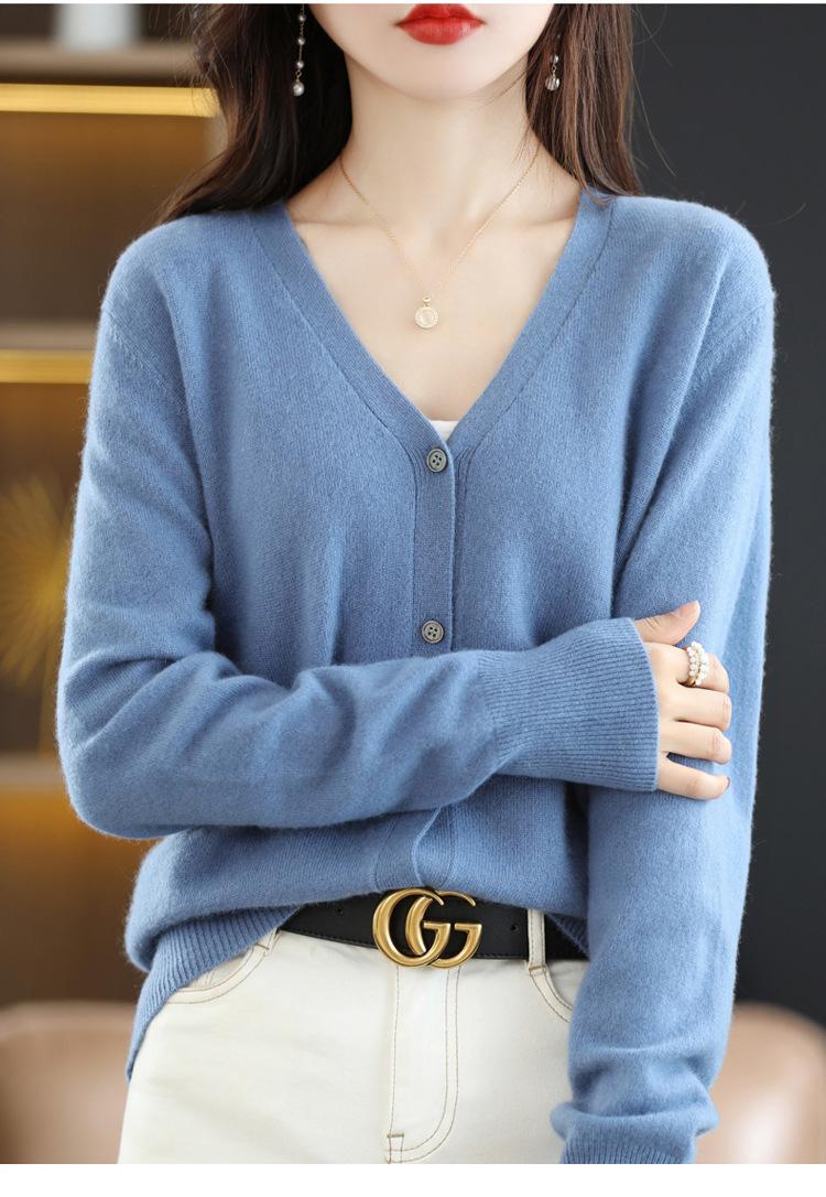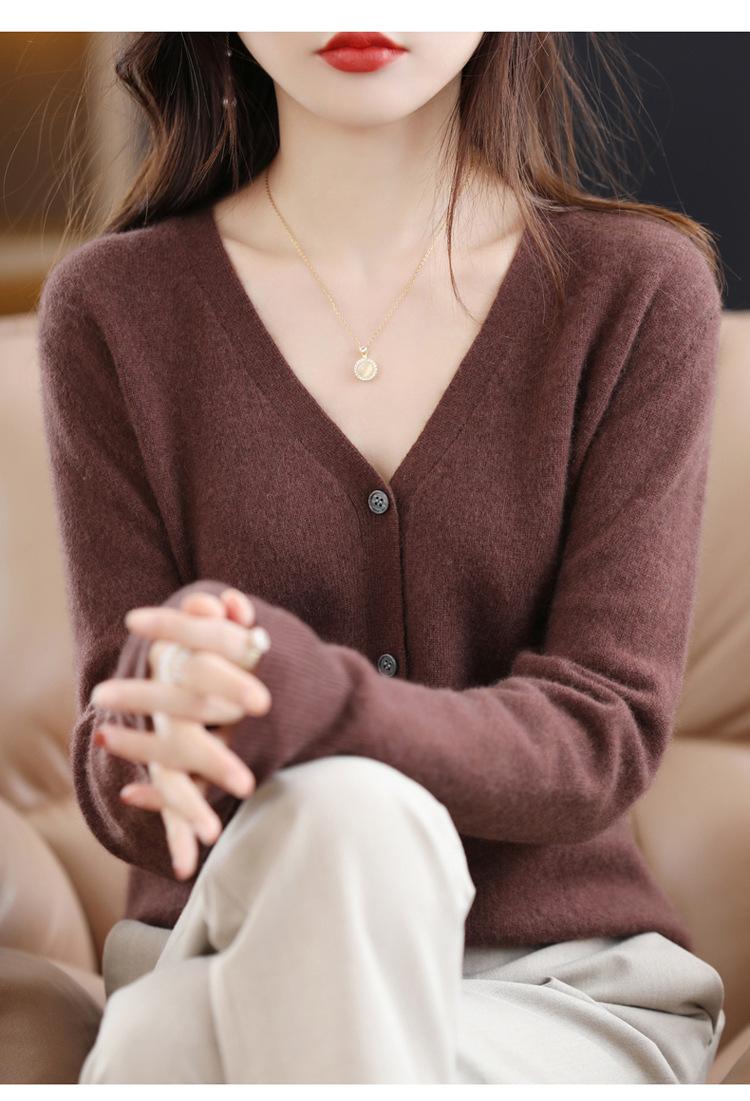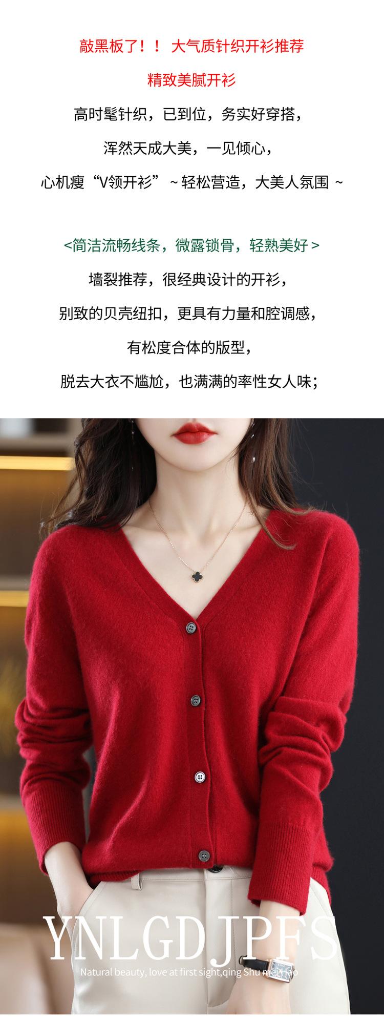 Suéter de lana confeccionado de primera línea, suéter de base de lana 100 para mujer, suéter de cachemira suelto de punto con cuello en V, top ajustado para otoño e invierno