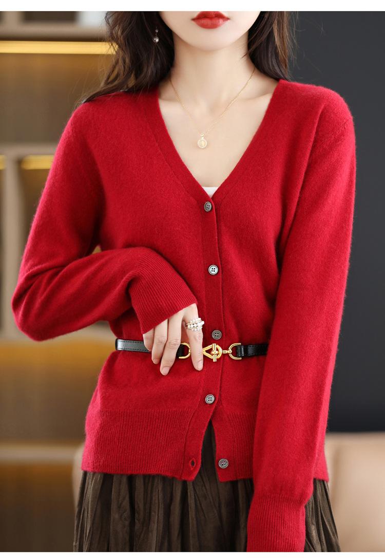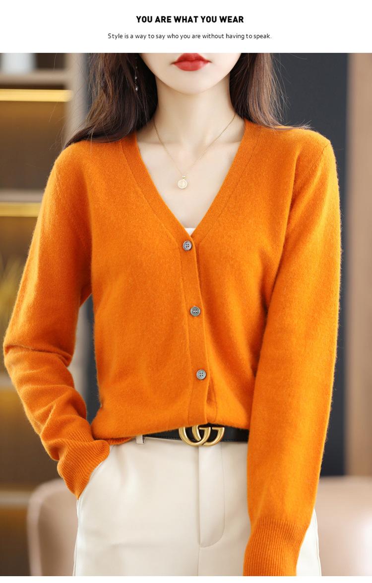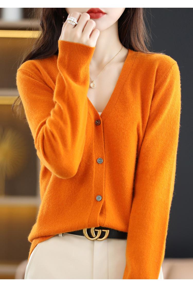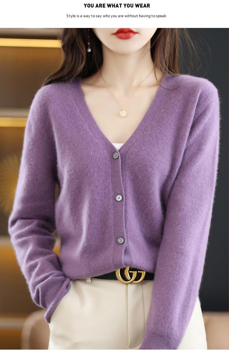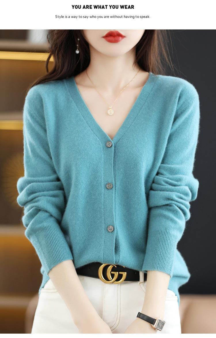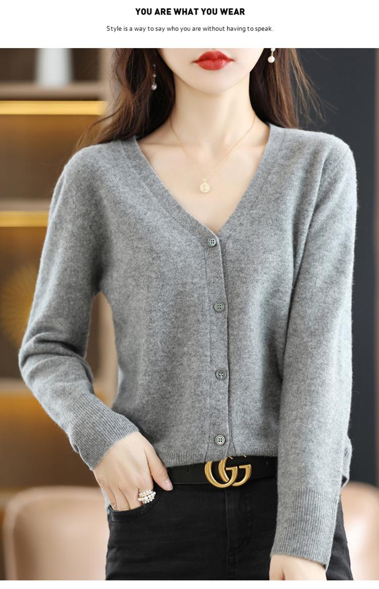 Suéter de lana confeccionado de primera línea, suéter de base de lana 100 para mujer, suéter de cachemira suelto de punto con cuello en V, top ajustado para otoño e invierno