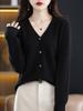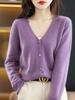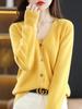 Suéter de punto de lana 100% con cuello POLO para mujer, cárdigan de manga larga, camisa informal, suéter de cachemira combinable con todo, chaqueta