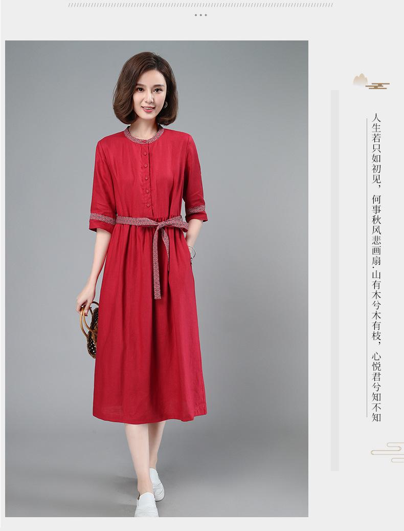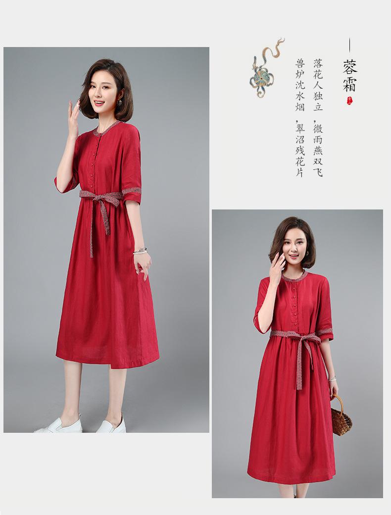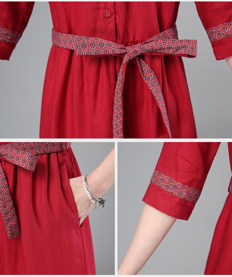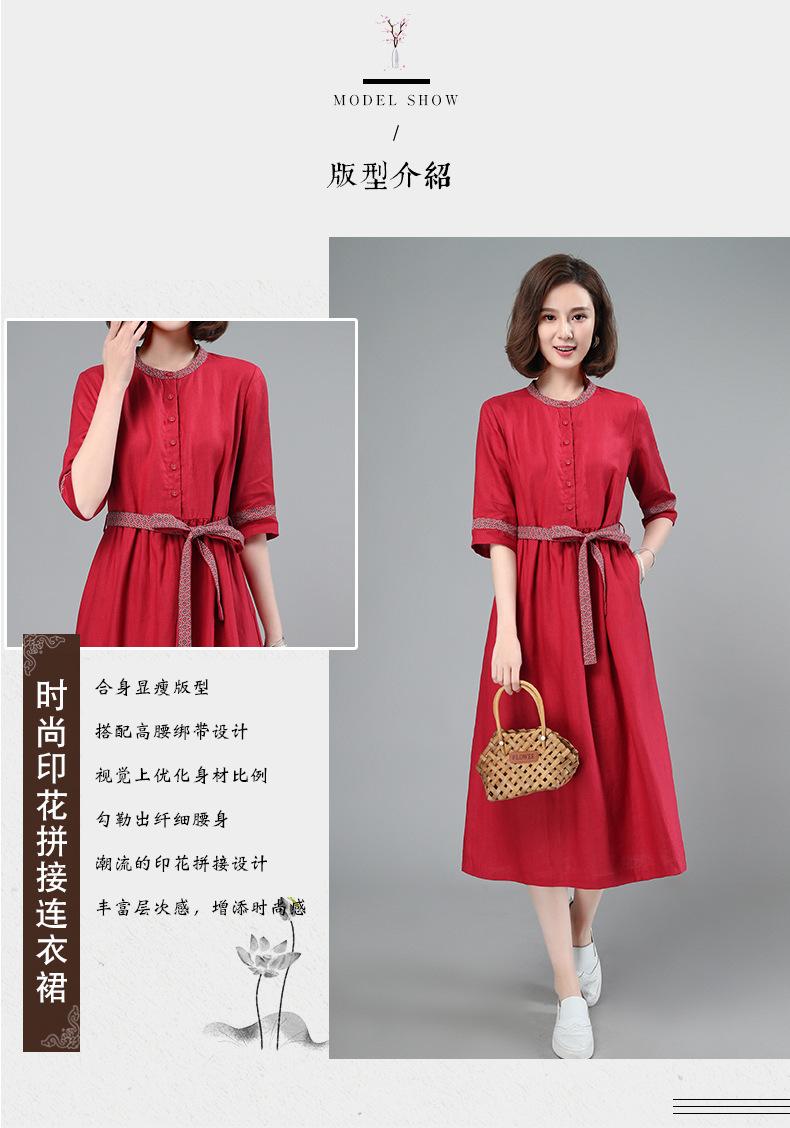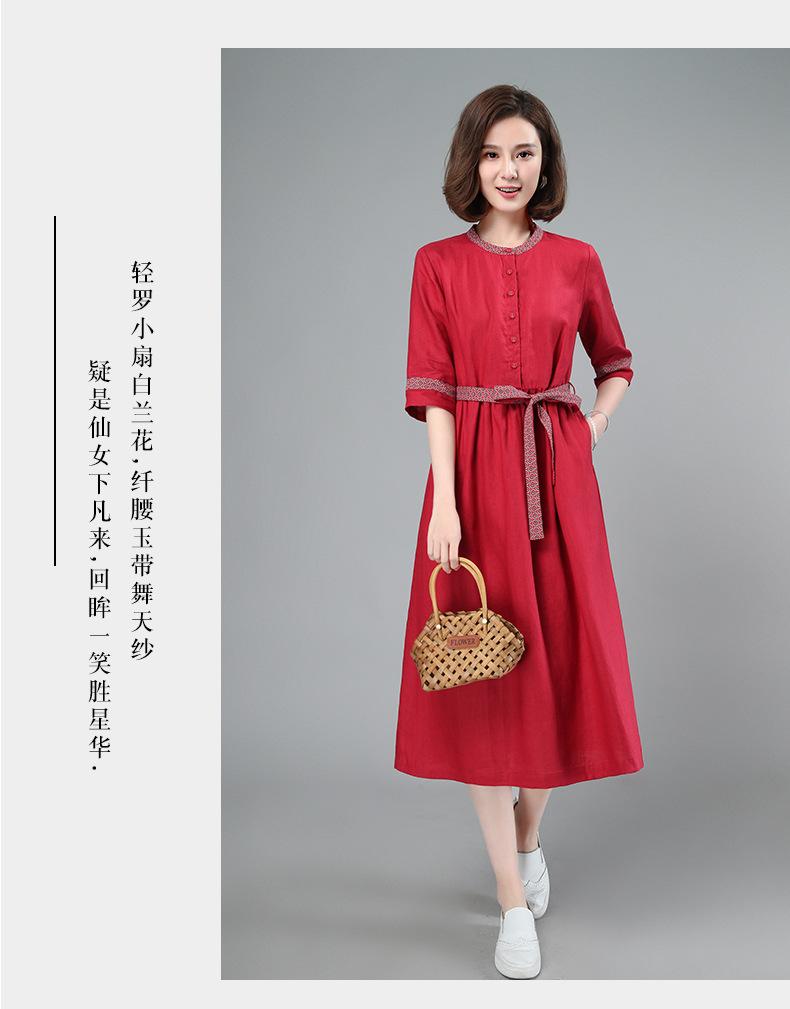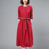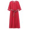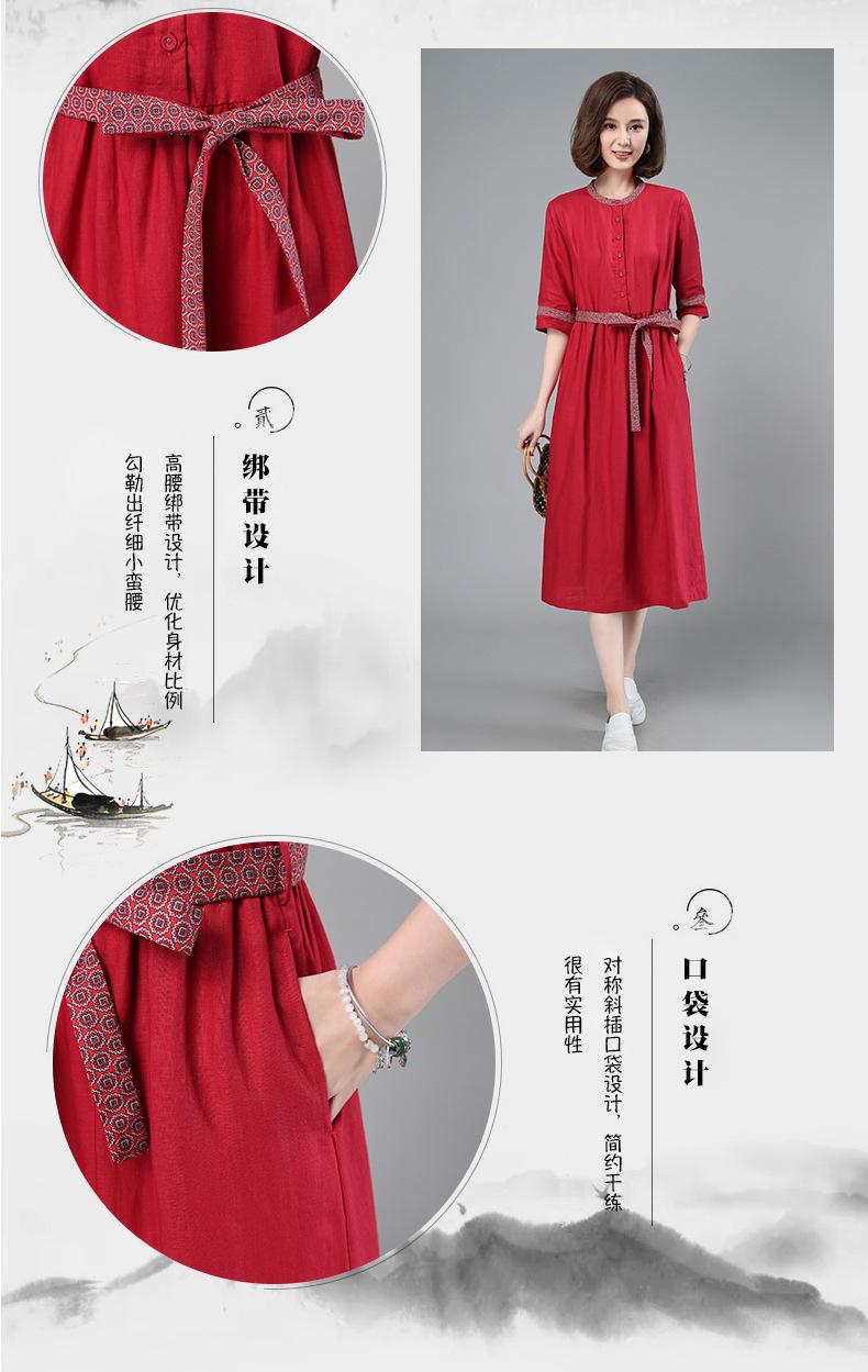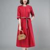 Vestido de mujer estilo nacional vintage con cinturón y cintura ajustada, falda adelgazante, moda elegante pequeña, verano 2024, nuevo