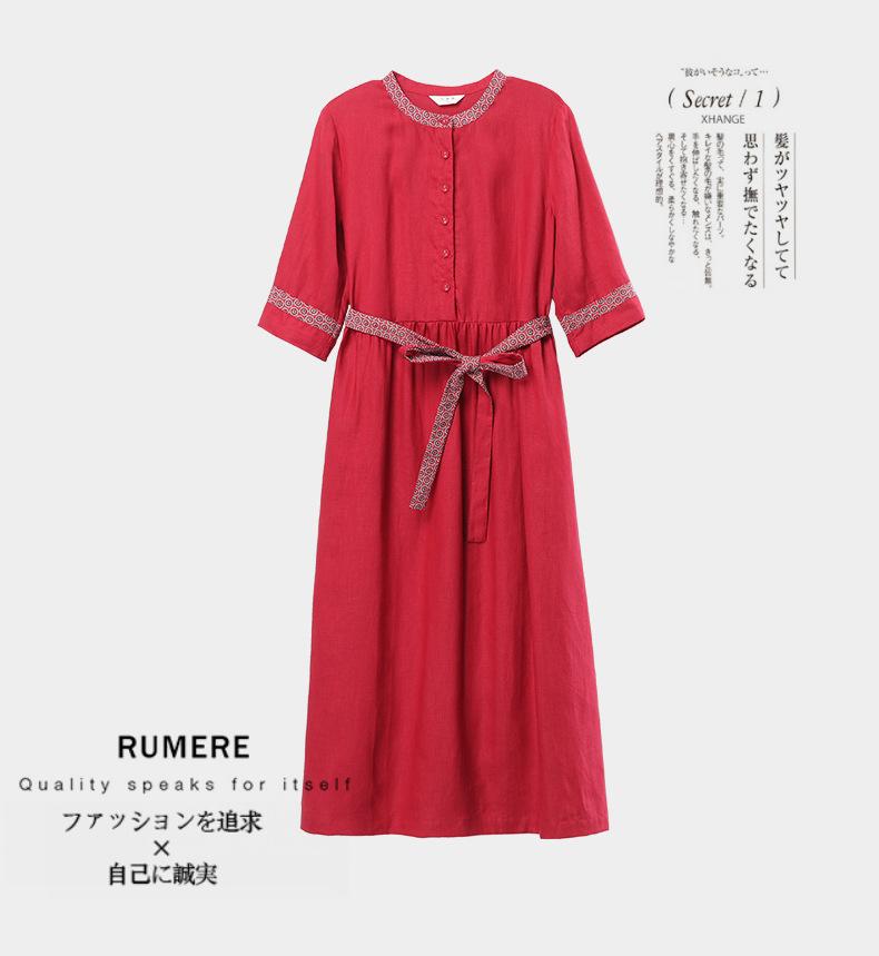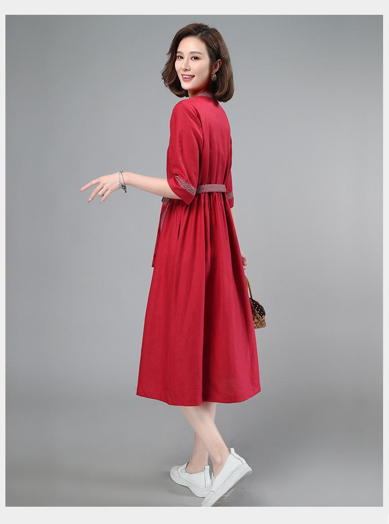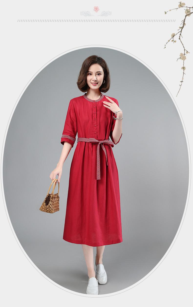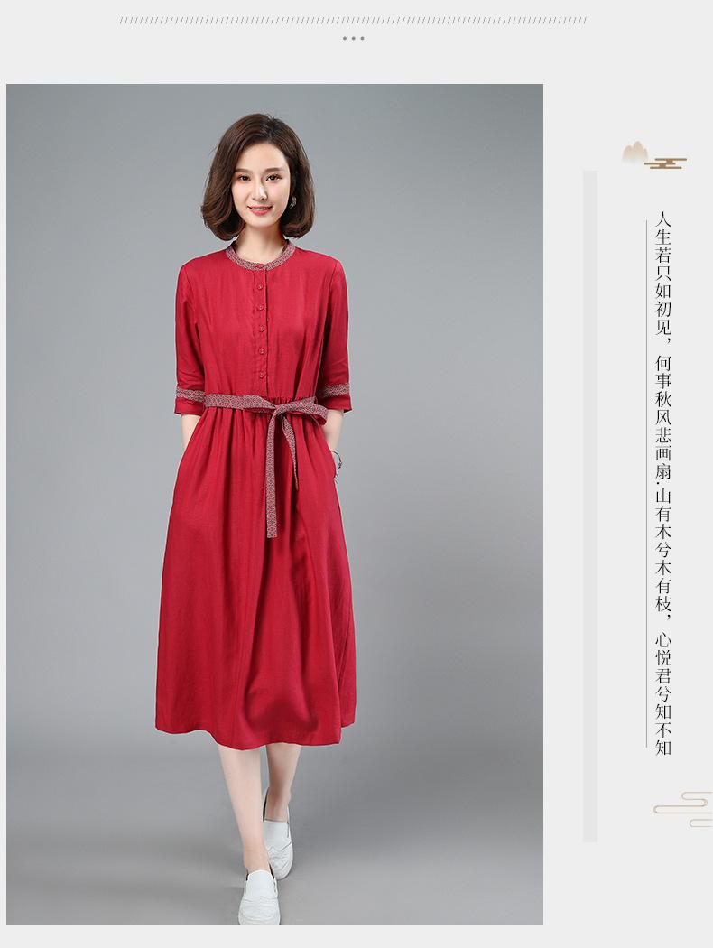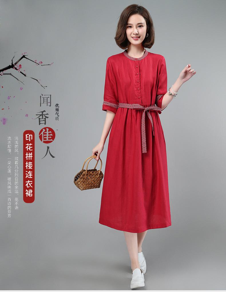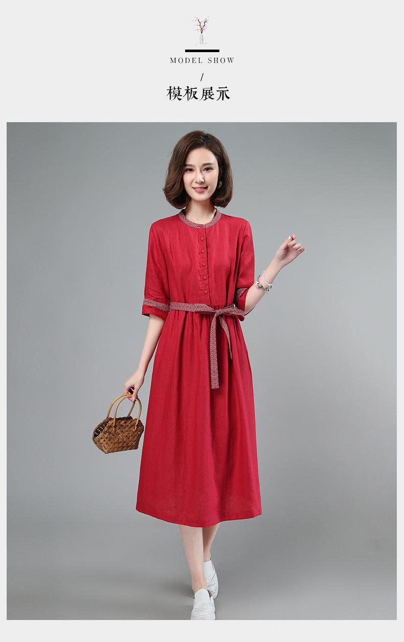 Vestido de mujer estilo nacional vintage con cinturón y cintura ajustada, falda adelgazante, moda elegante pequeña, verano 2024, nuevo