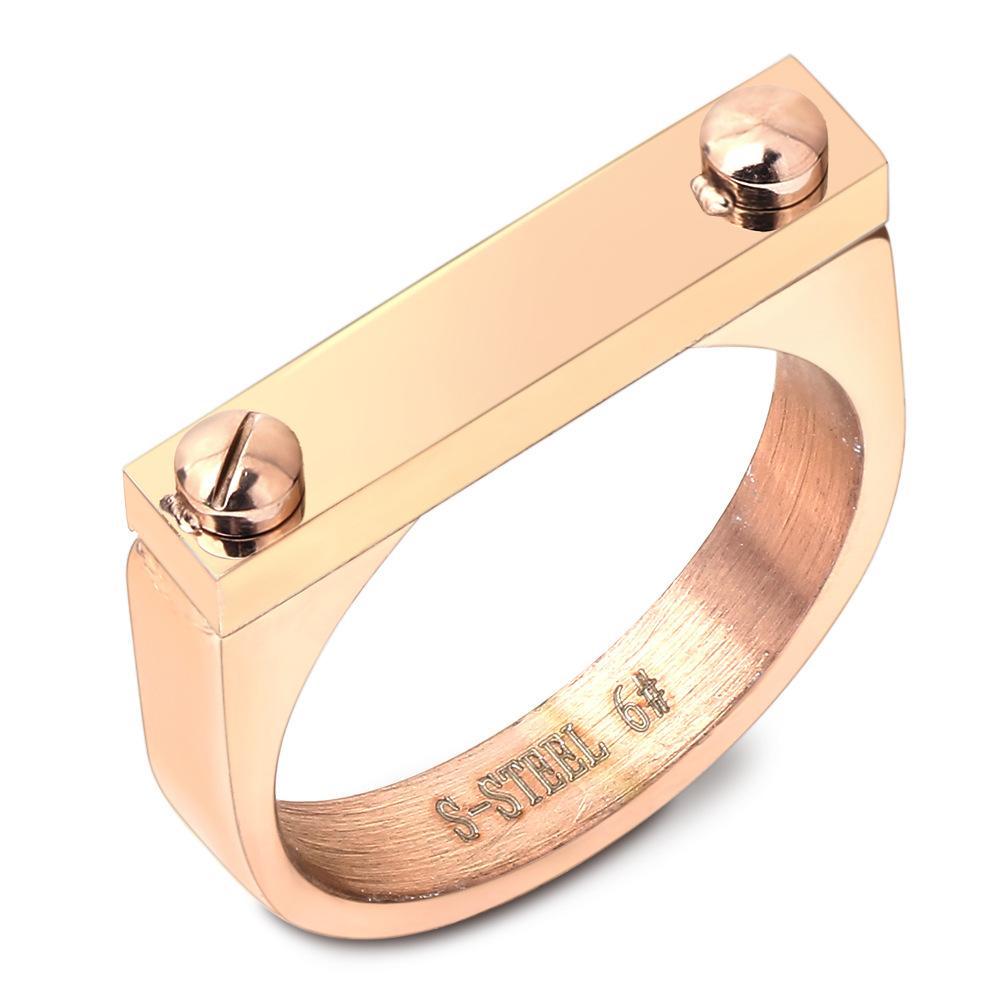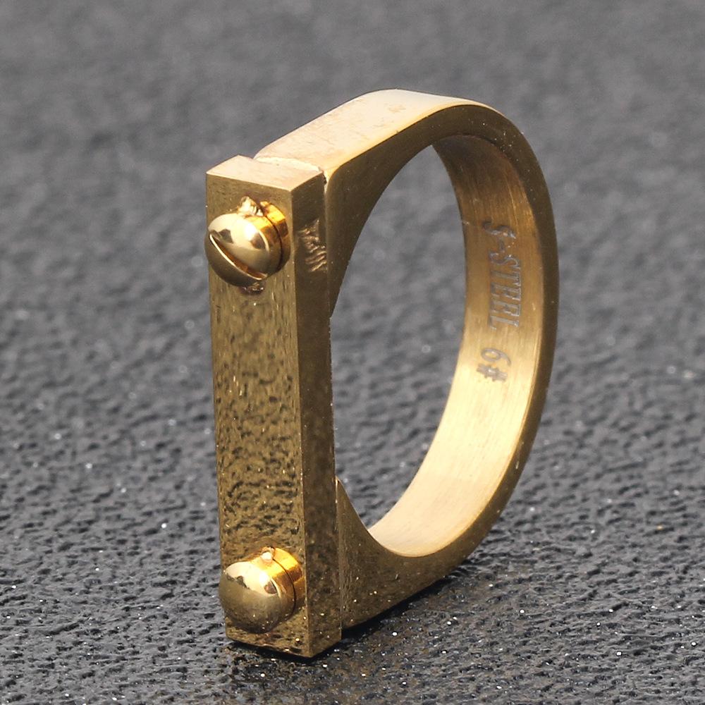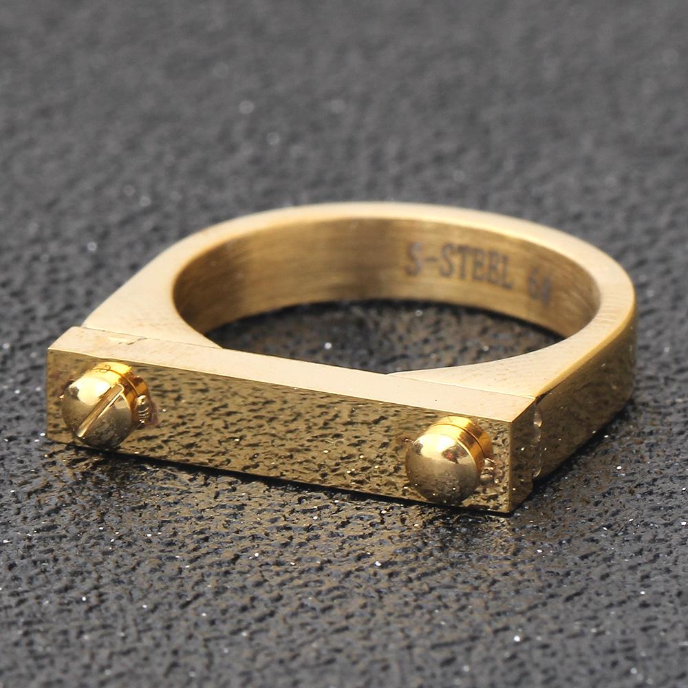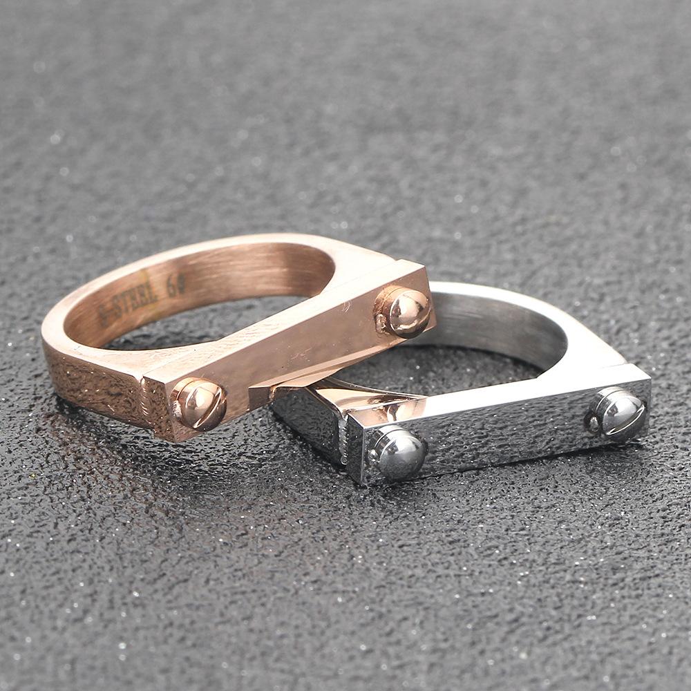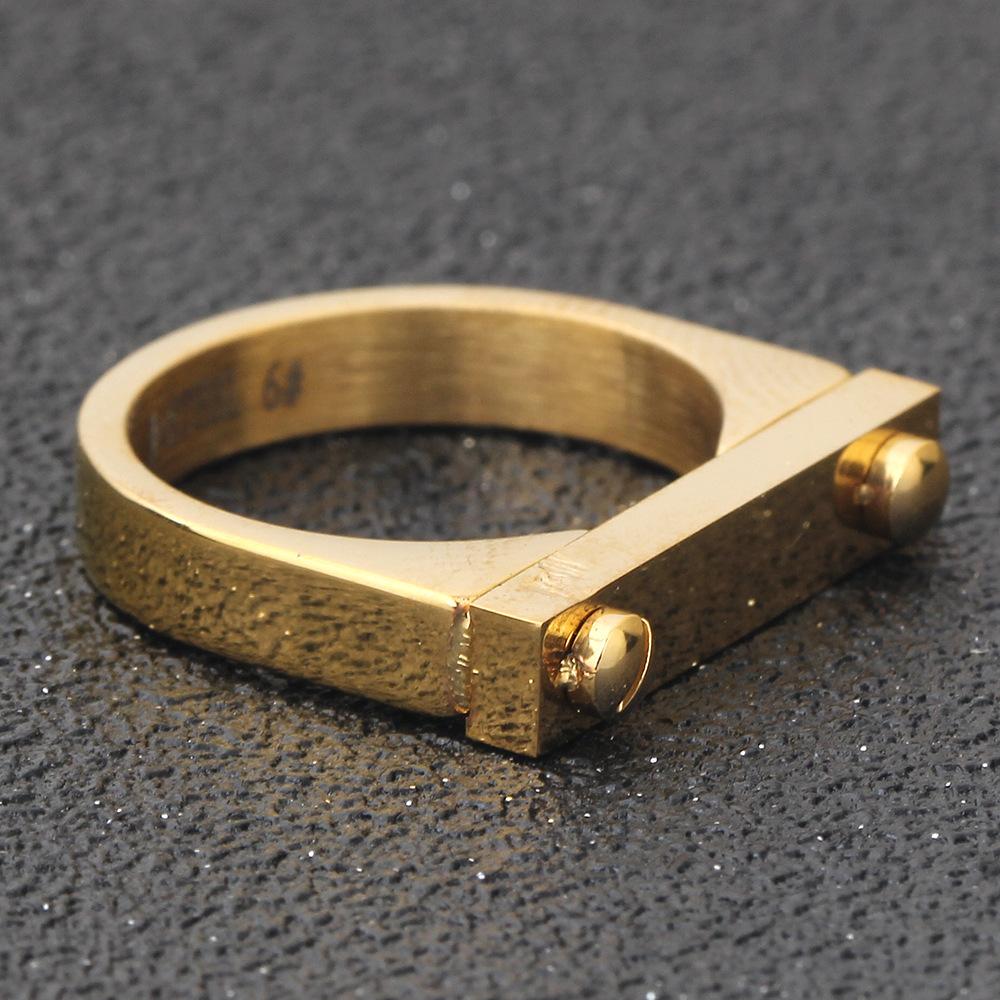 Anillo de pareja con remaches dobles de cabeza plana de 4 mm, elegante y moderno, de acero de titanio y oro de 18 quilates, estilo europeo y americano, muy popular entre los países europeos y americanos.