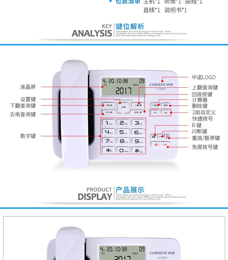 Teléfono fijo Zhongnuo C256 para oficina en casa, con cable, con identificador de llamadas de una sola máquina