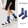 1 par-Calcetines de tubo nuevos de invierno Renacimiento contraste azul y negro gruesos cálidos calcetines de algodón de Xinjiang calcetines de mujer al por mayor