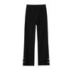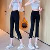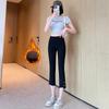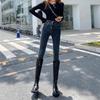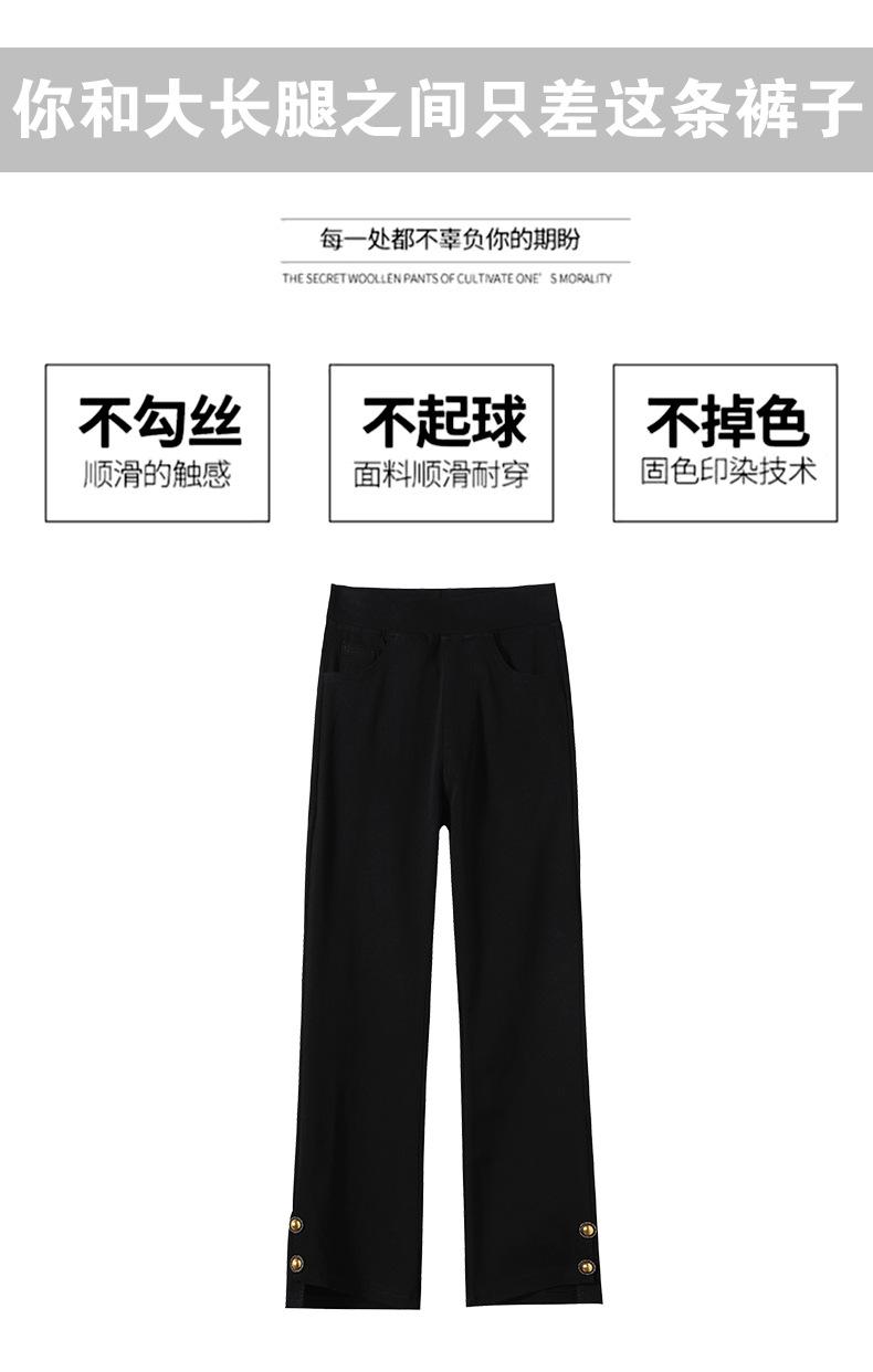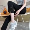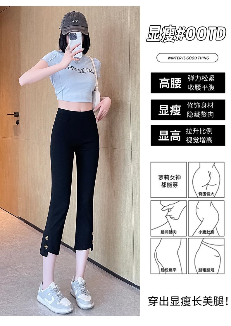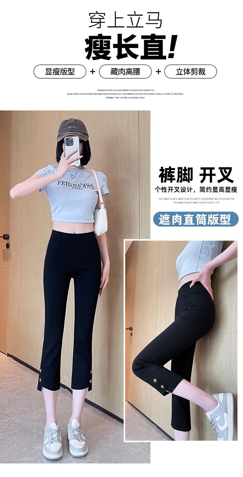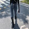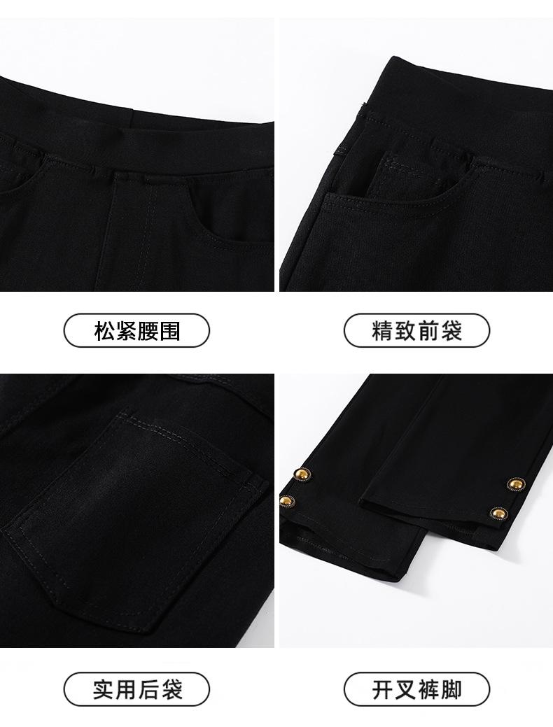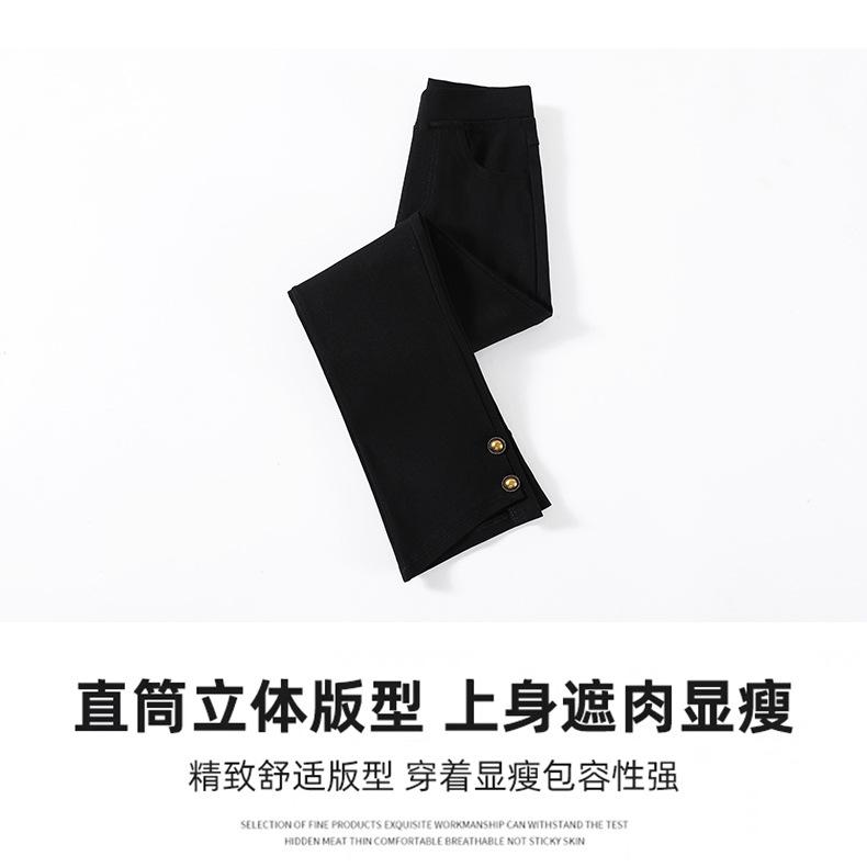 Jeans de Imitación con Abertura de Cintura Alta para Mujer Otoño e Invierno 2024 Terciopelo Delgado Adelgazantes Base Pantalones Negros Pequeños Pantalones Capri Irregulares
