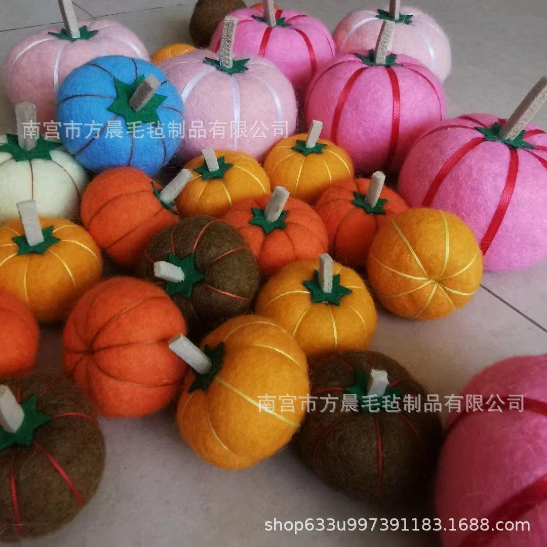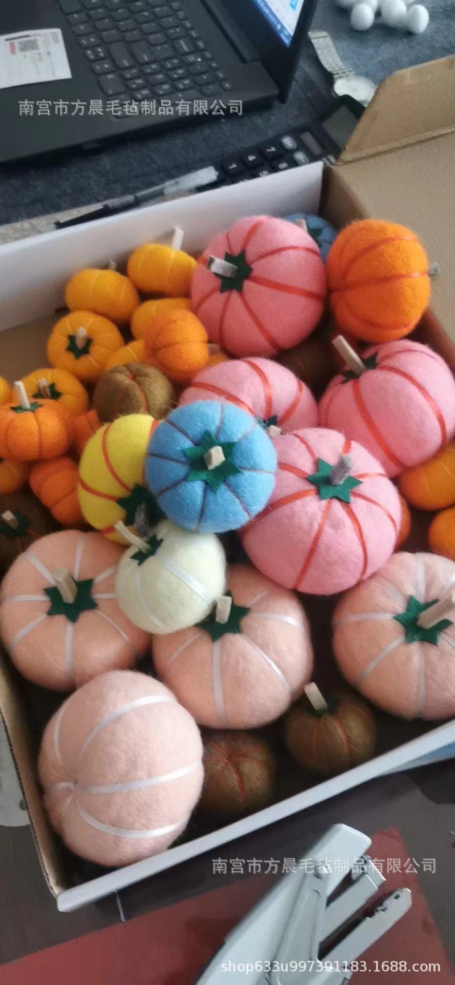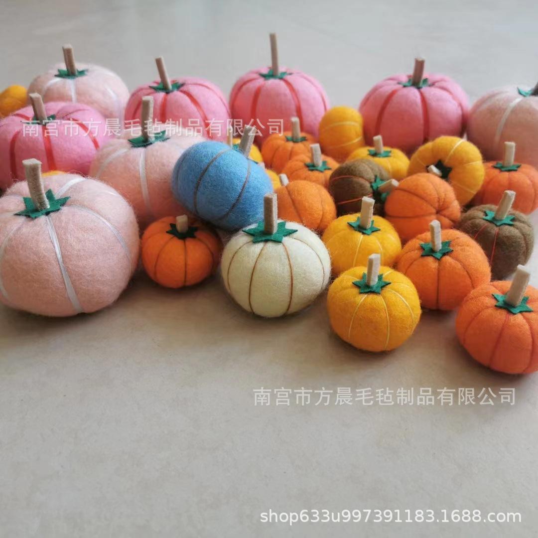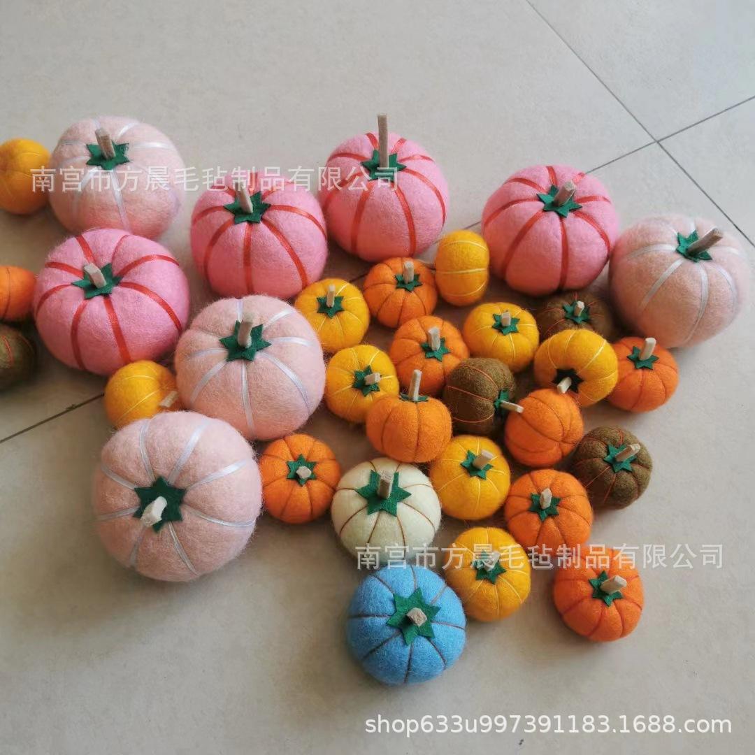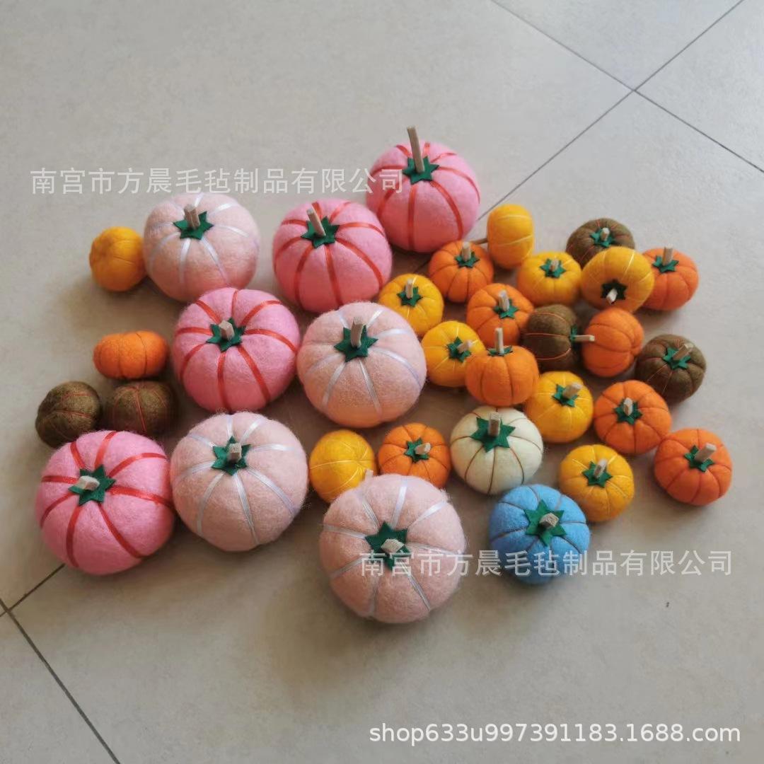 Nuevas calabazas coloridas de Halloween hechas de fieltro de lana para decorar, accesorios de calabaza de Pascua y Halloween.