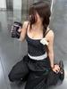 Top Corto Ajustado para Mujer, Patchwork de Encaje con Lunares Negros, Camisola Versátil, Dulce y Fresco