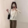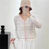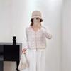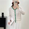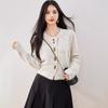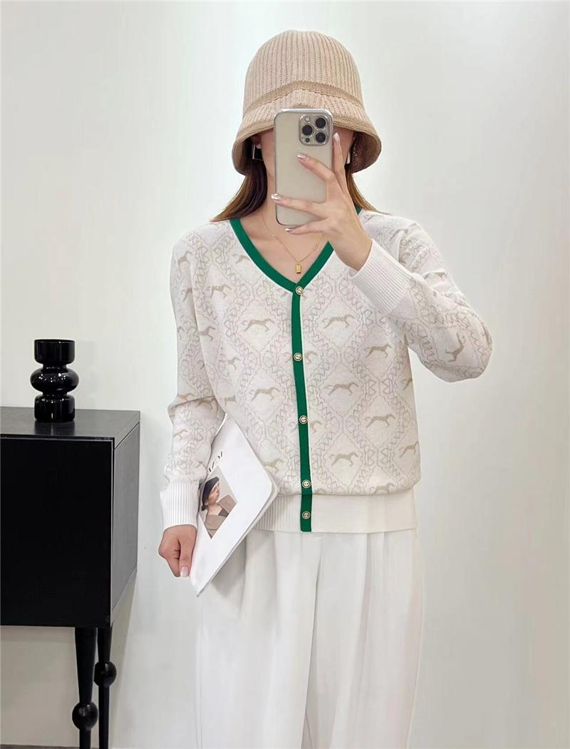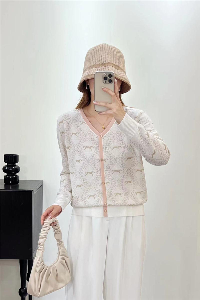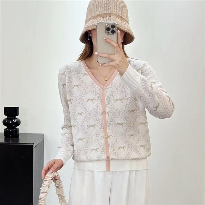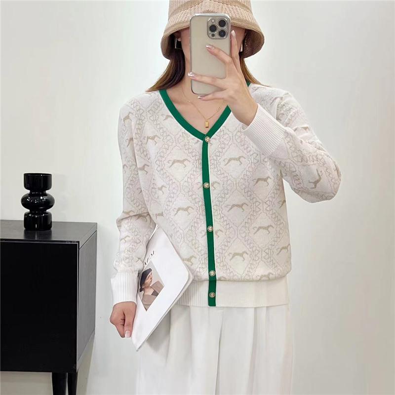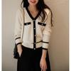 Suéter de punto estilo Chanel de primavera 2024 con cuello en V y color contrastante para mujer, cárdigan de punto con cuello en V y manga larga con diseño de pony de diamante