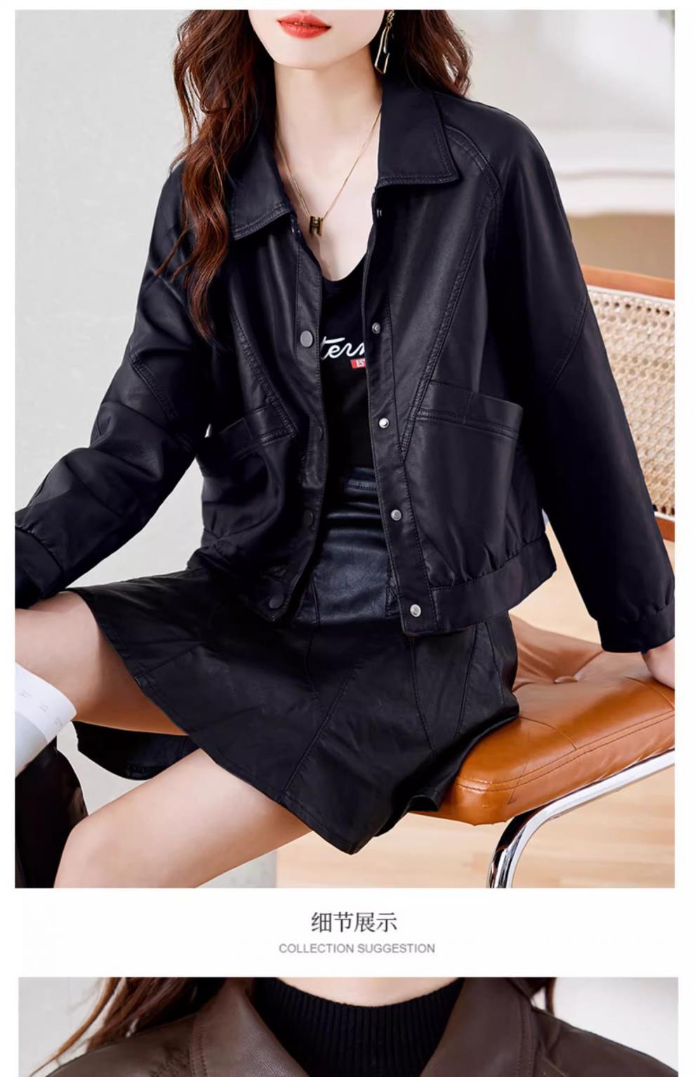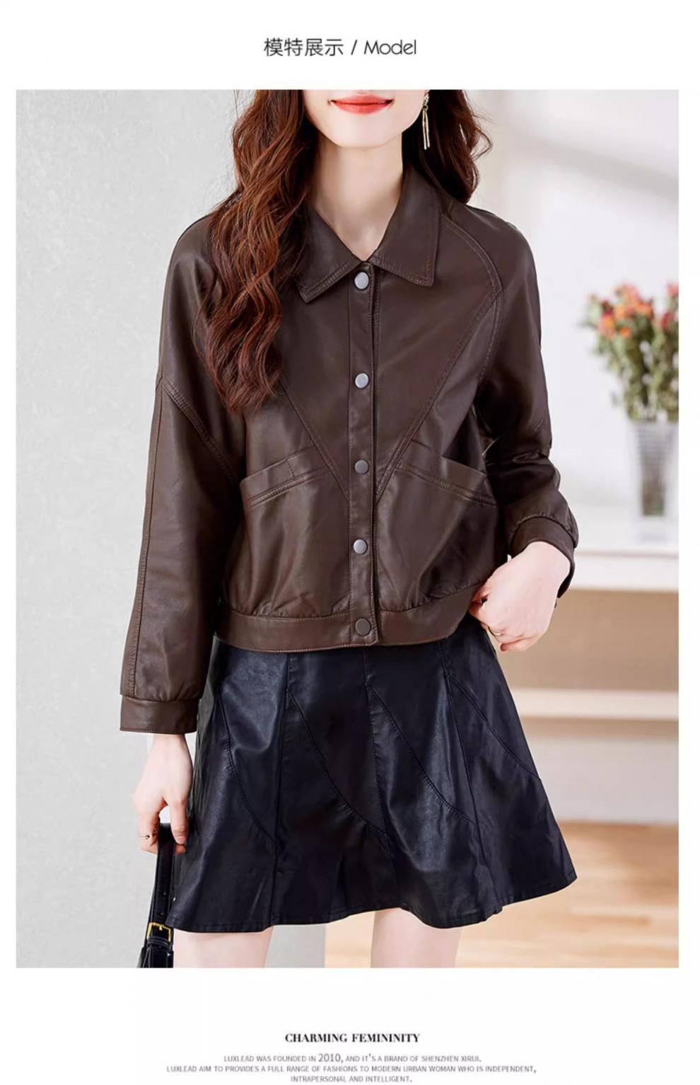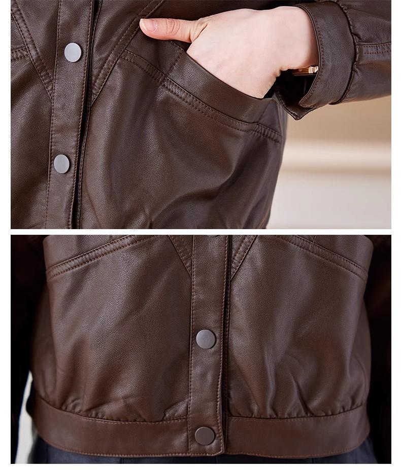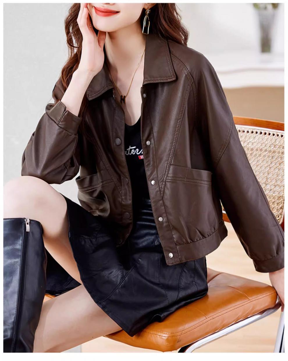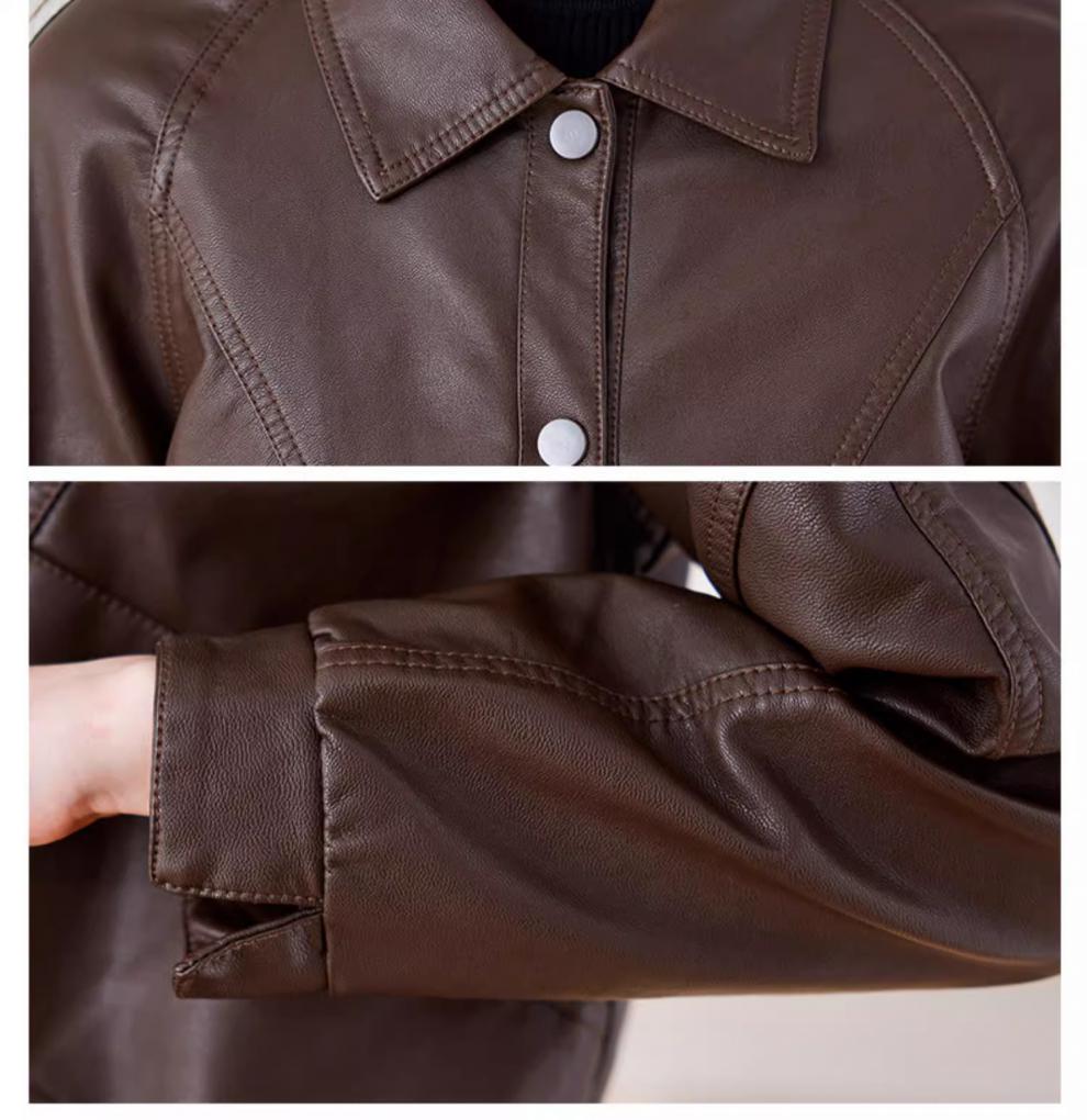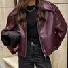 Abrigo Holgado de Cuero para Mujer 2024 Nueva Moda Motocicleta Corto Invierno Chaqueta de Cuero PU Top Casual