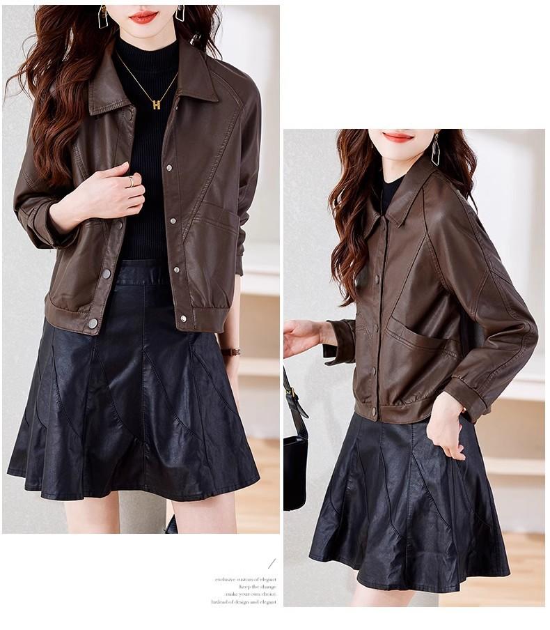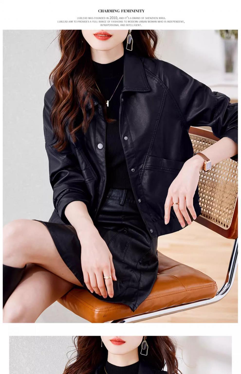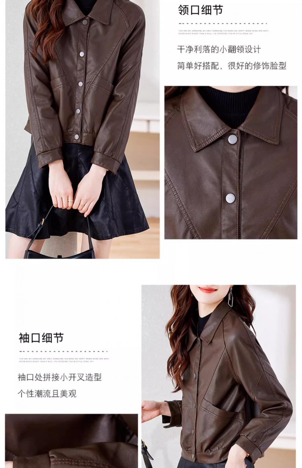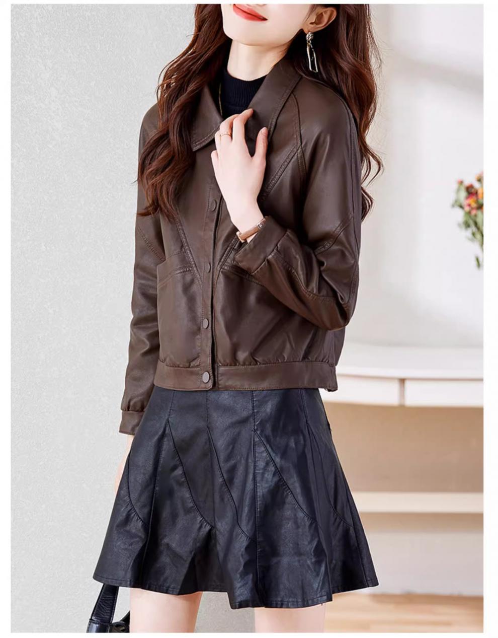Abrigo Holgado de Cuero para Mujer 2024 Nueva Moda Motocicleta Corto Invierno Chaqueta de Cuero PU Top Casual