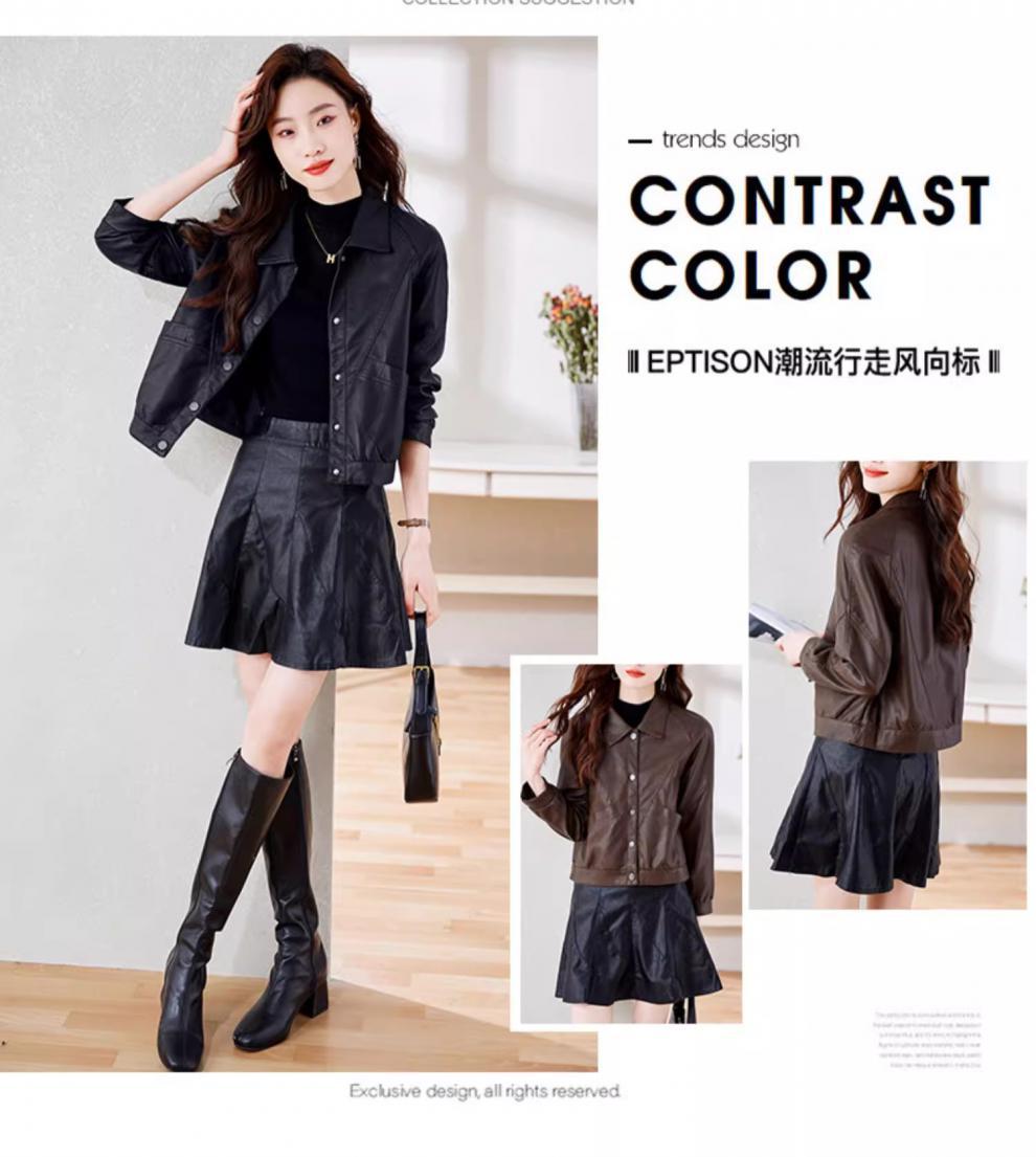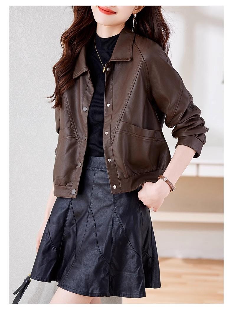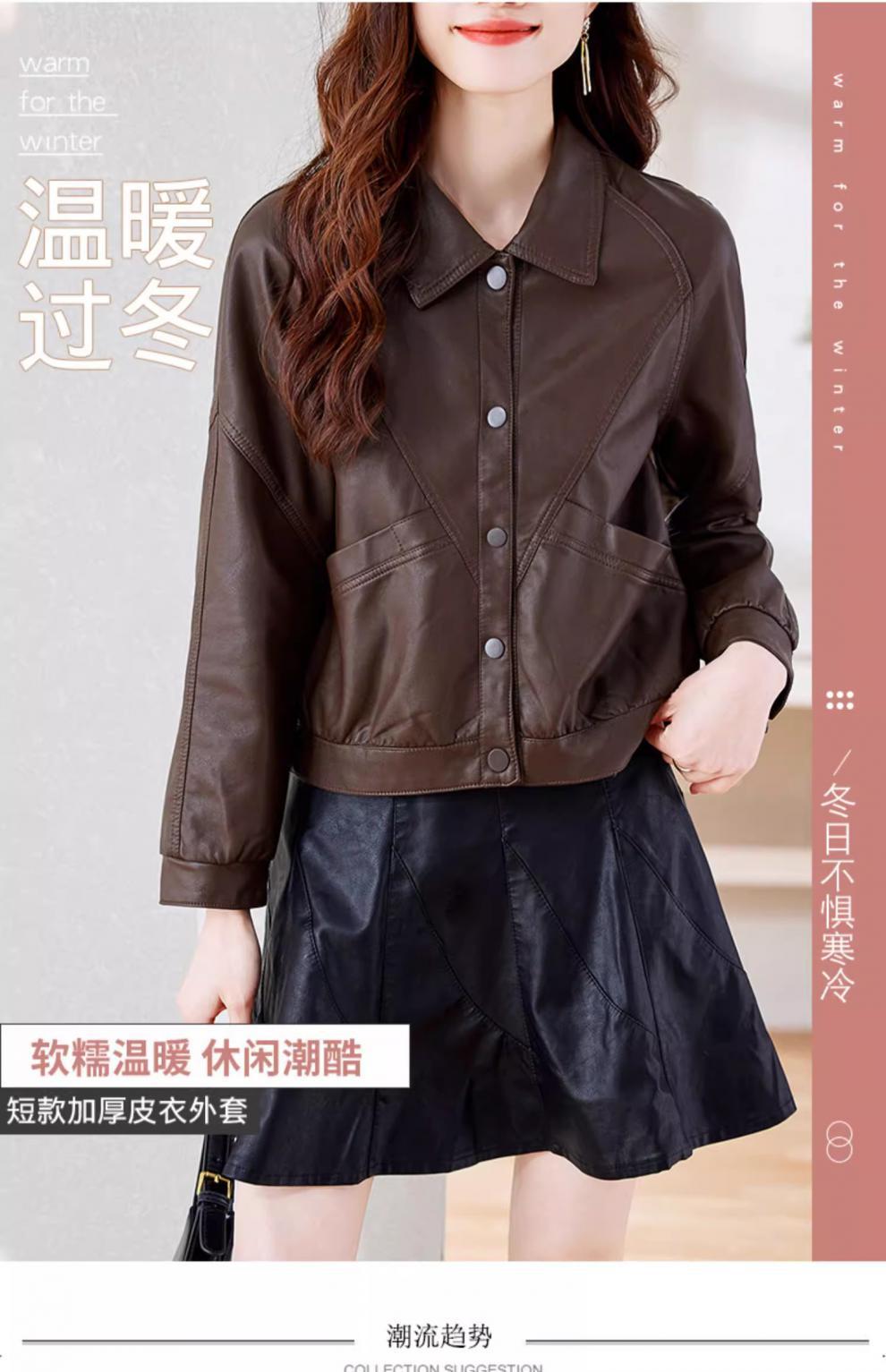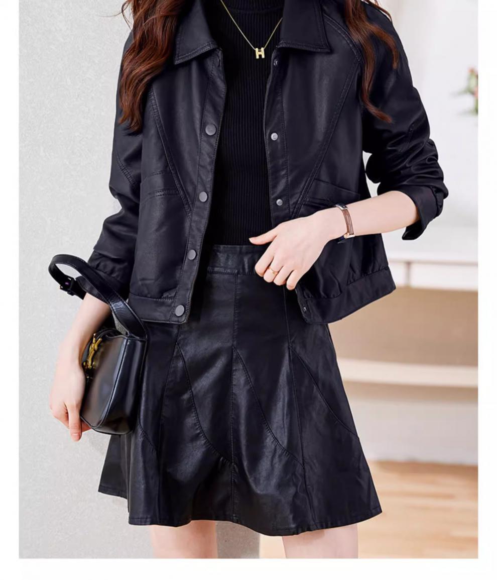 Abrigo Holgado de Cuero para Mujer 2024 Nueva Moda Motocicleta Corto Invierno Chaqueta de Cuero PU Top Casual