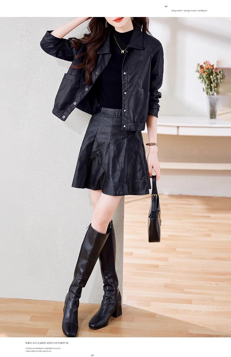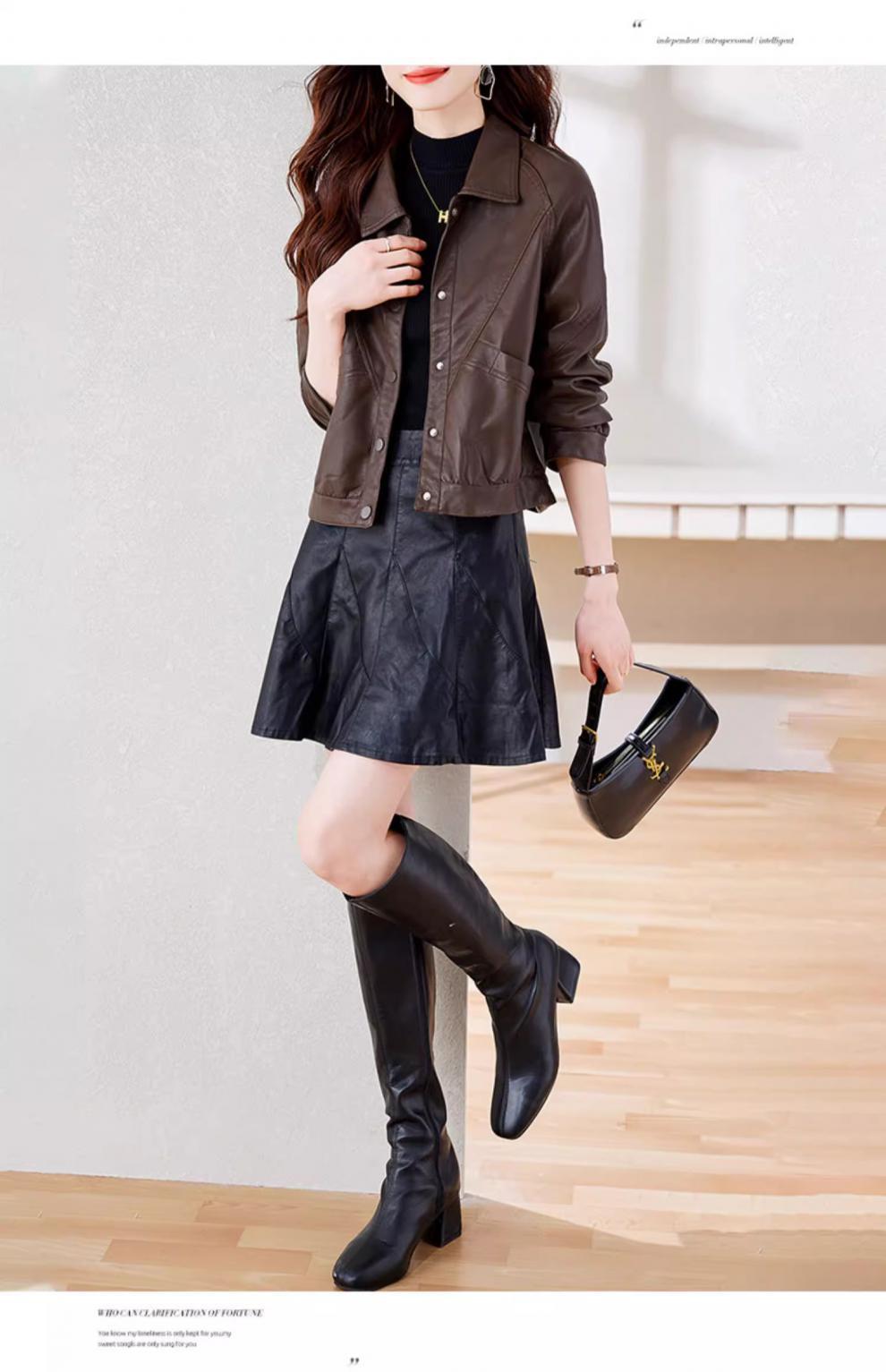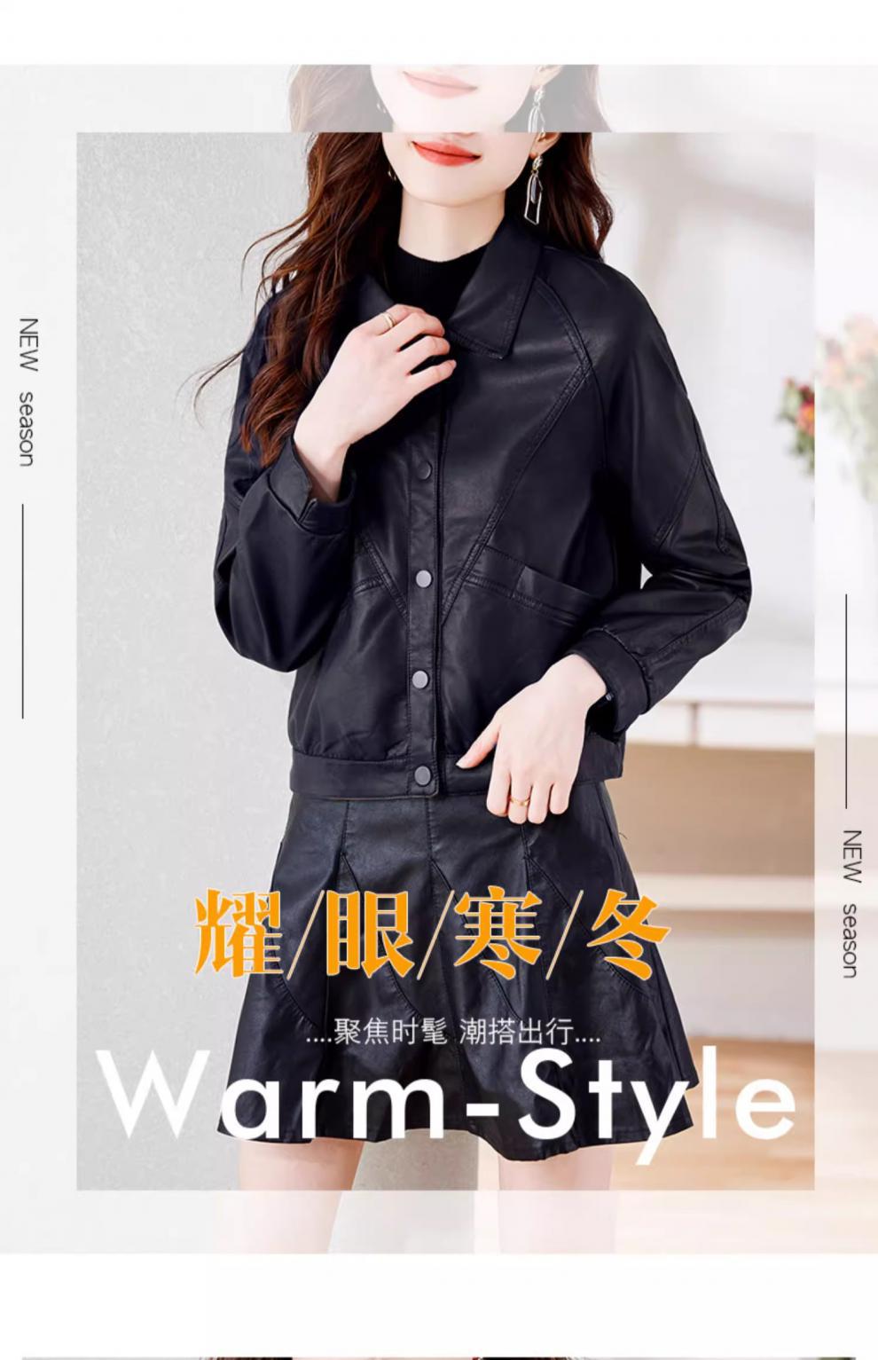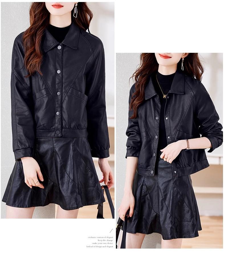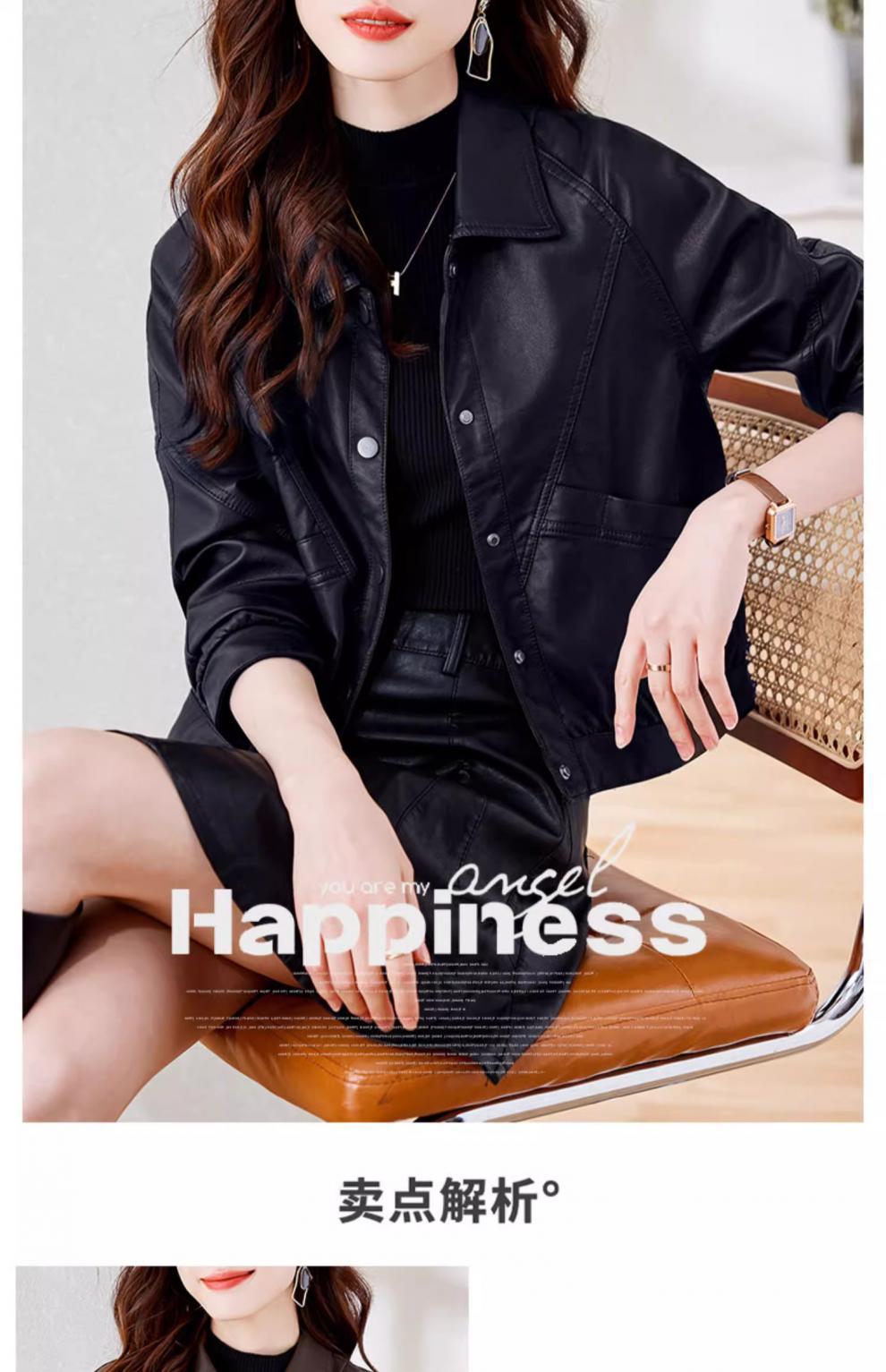 Abrigo Holgado de Cuero para Mujer 2024 Nueva Moda Motocicleta Corto Invierno Chaqueta de Cuero PU Top Casual