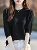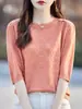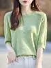 Camisa de punto con cuello redondo, manga corta, ligera, holgada e informal, para mujer, primavera y verano, 24 unidades
