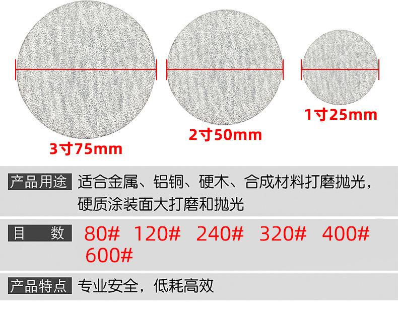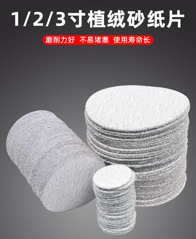Papel de lija flocado Jinniu de 1, 2 y 3 pulgadas, disco de lijado en seco redondo Air Mill, hoja de papel de lija para pulir