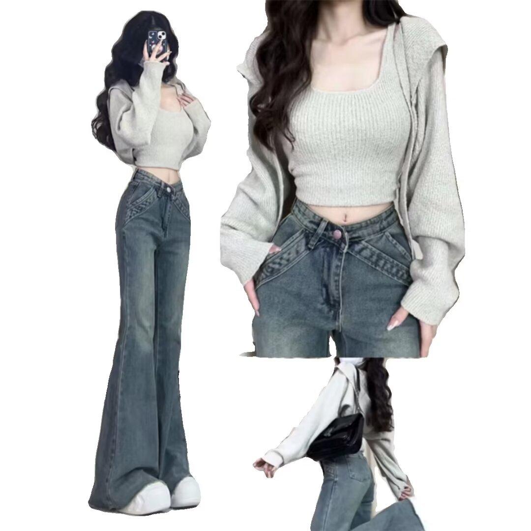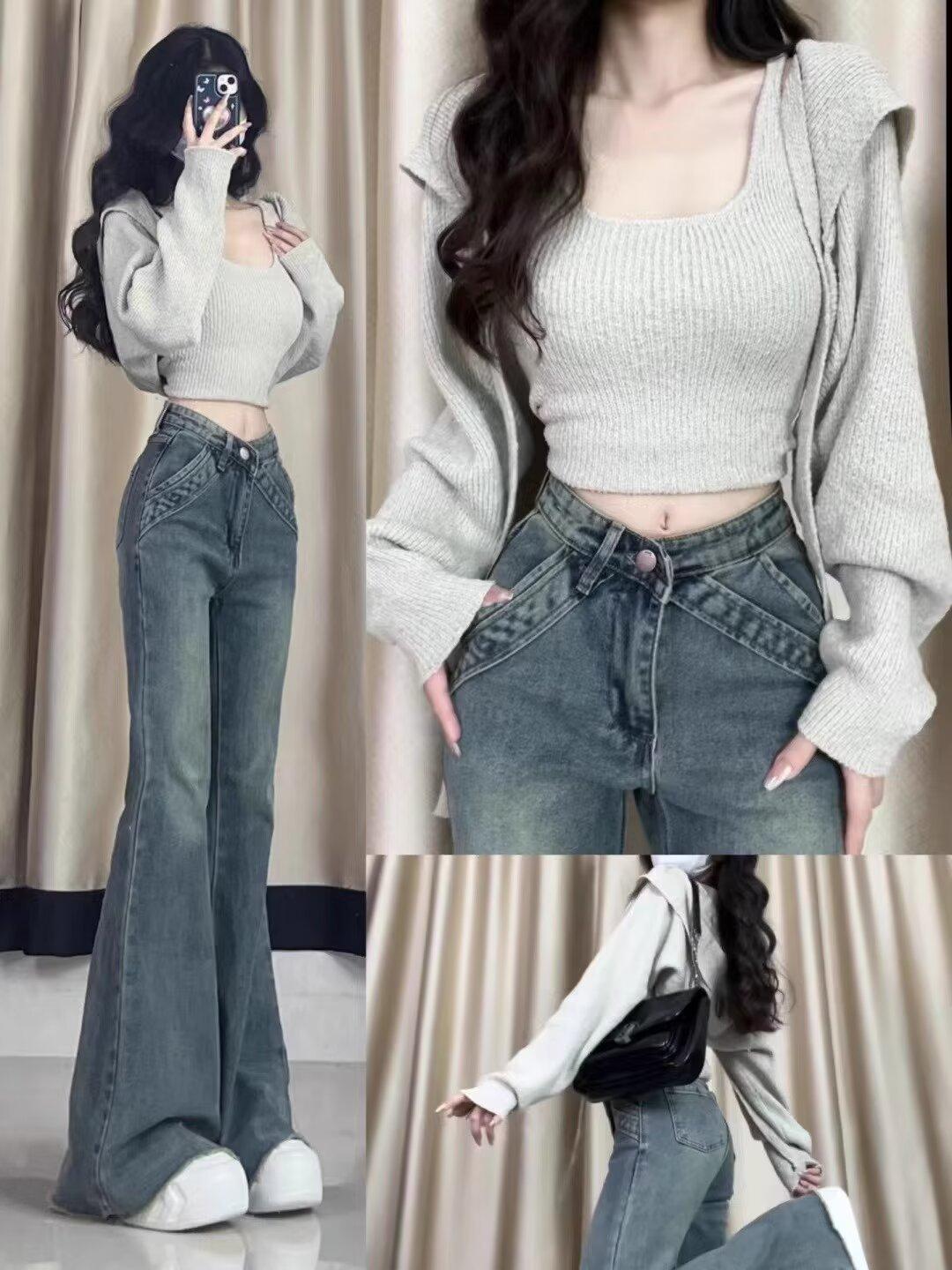 Pantalones vaqueros acampanados de cintura alta estilo retro de High Street para mujer, nuevos diseños de verano con sensación americana, pantalones adelgazantes ajustados con bordes deshilachados