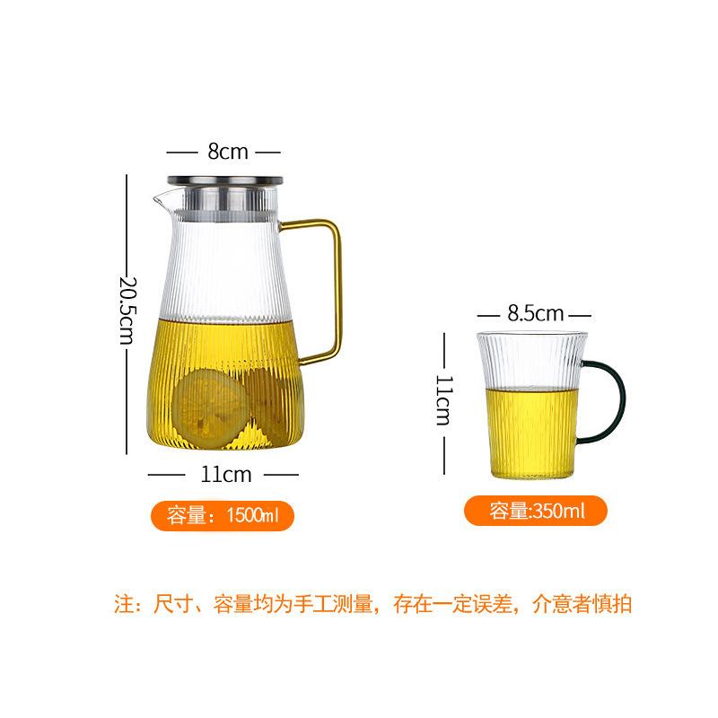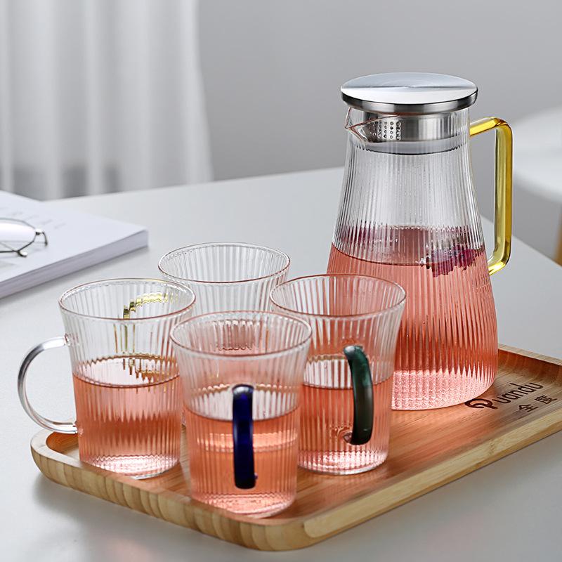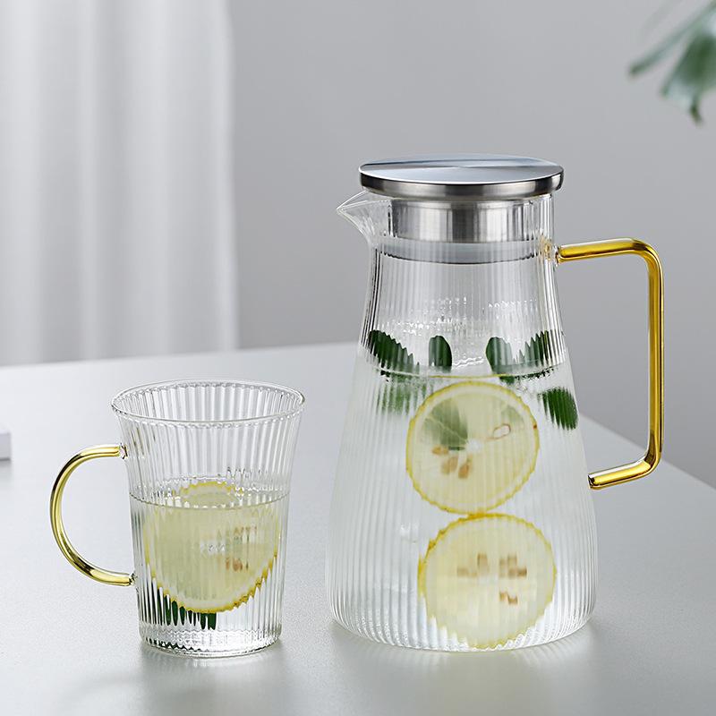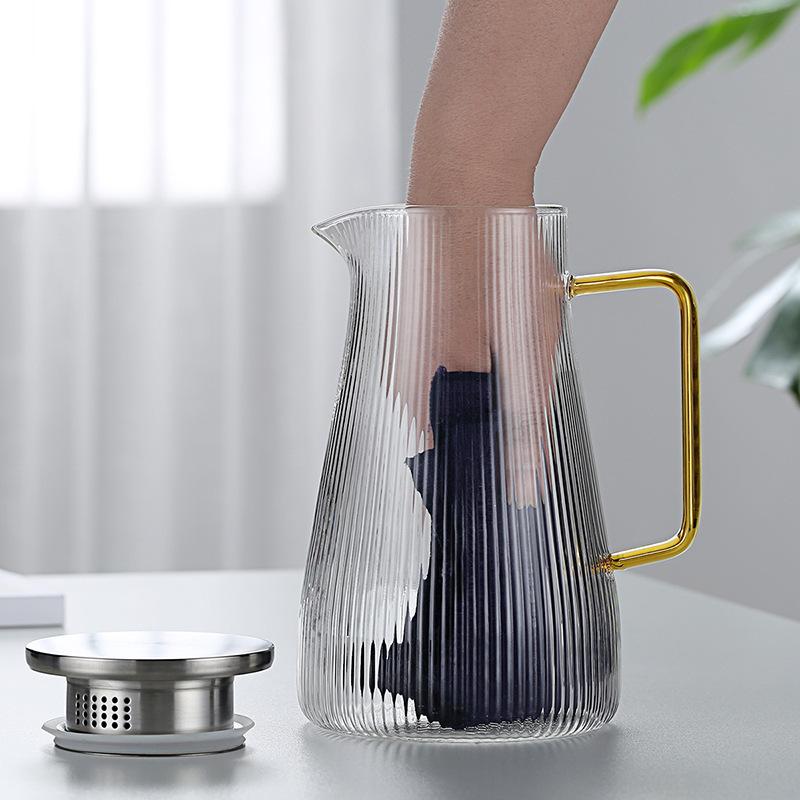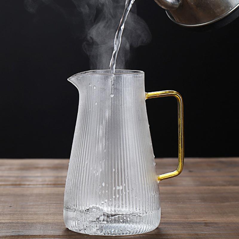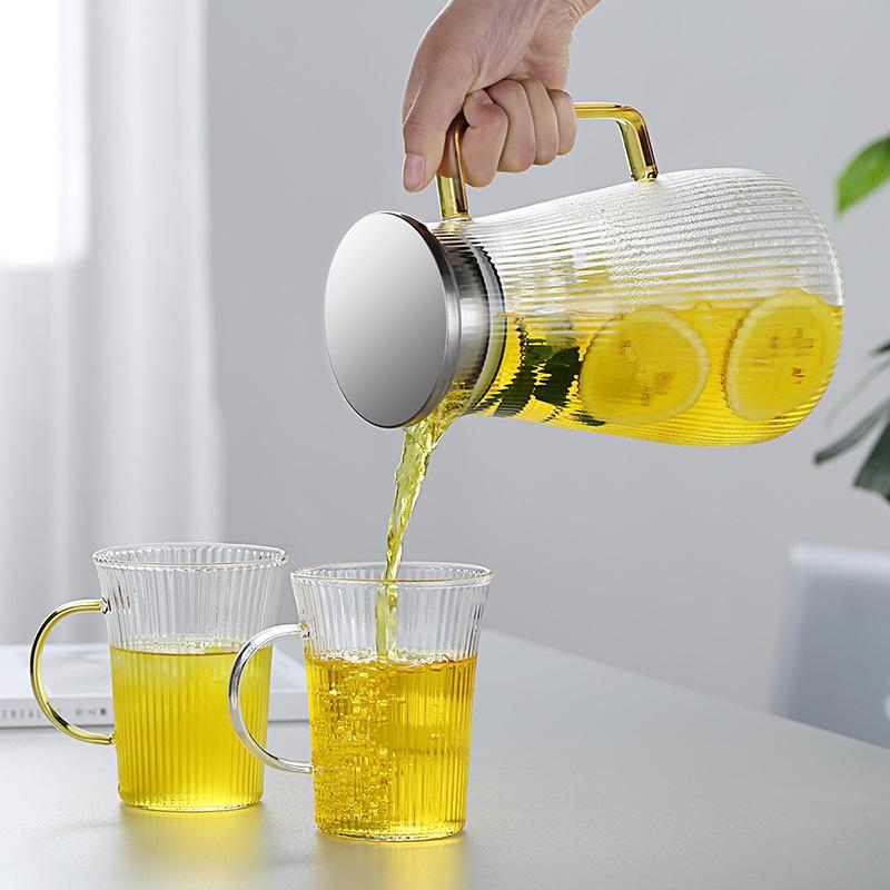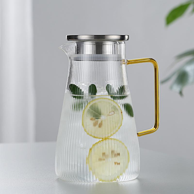 Jarra de Vidrio Simple de Raya Vertical para Agua Fría, Jarra de Agua Fría de Alto Borosilicato, Tetera Doméstica de Gran Capacidad, Ventas al por Mayor para Cold Brew