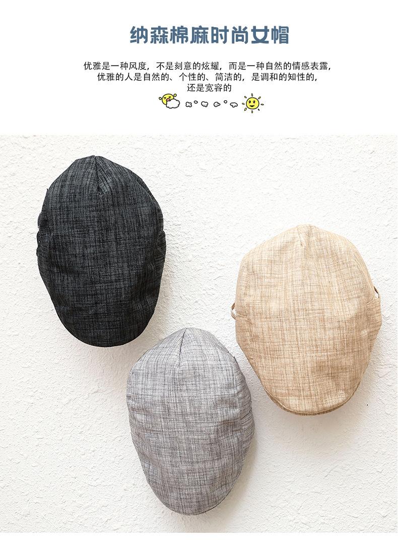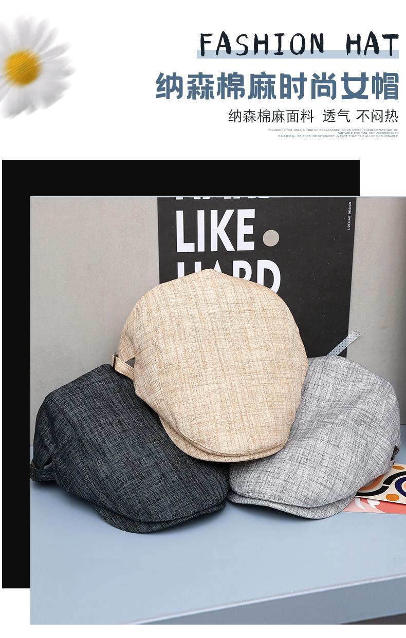 Sombrero de verano nueva versión coreana de algodón y lino gorra delantera británica para hombres y mujeres parejas boina gorra ajustable al por mayor