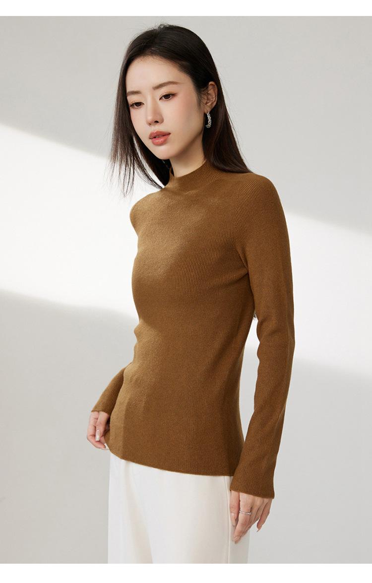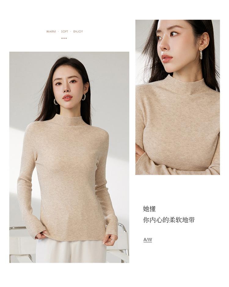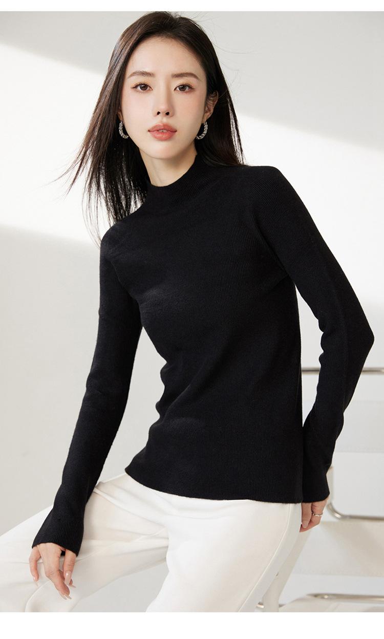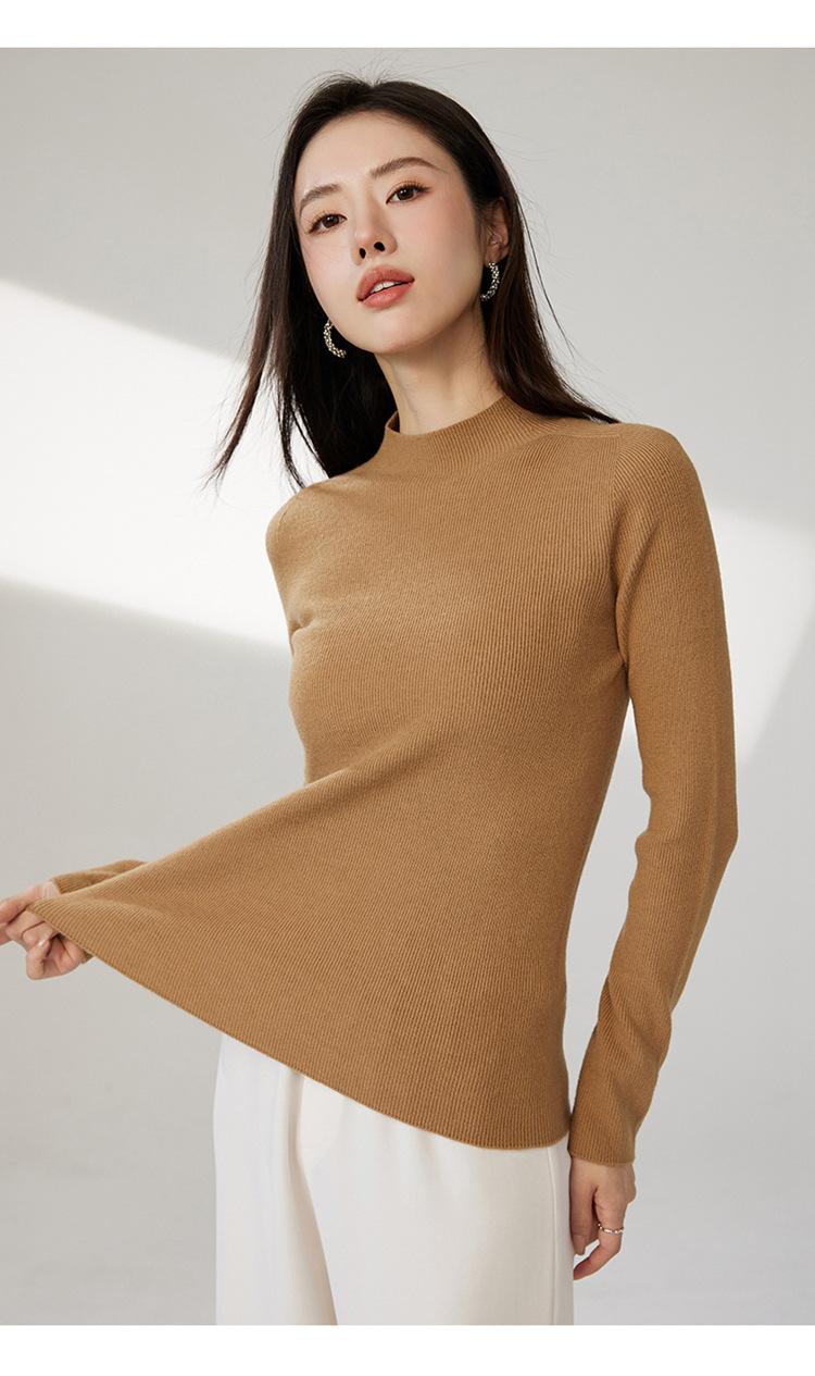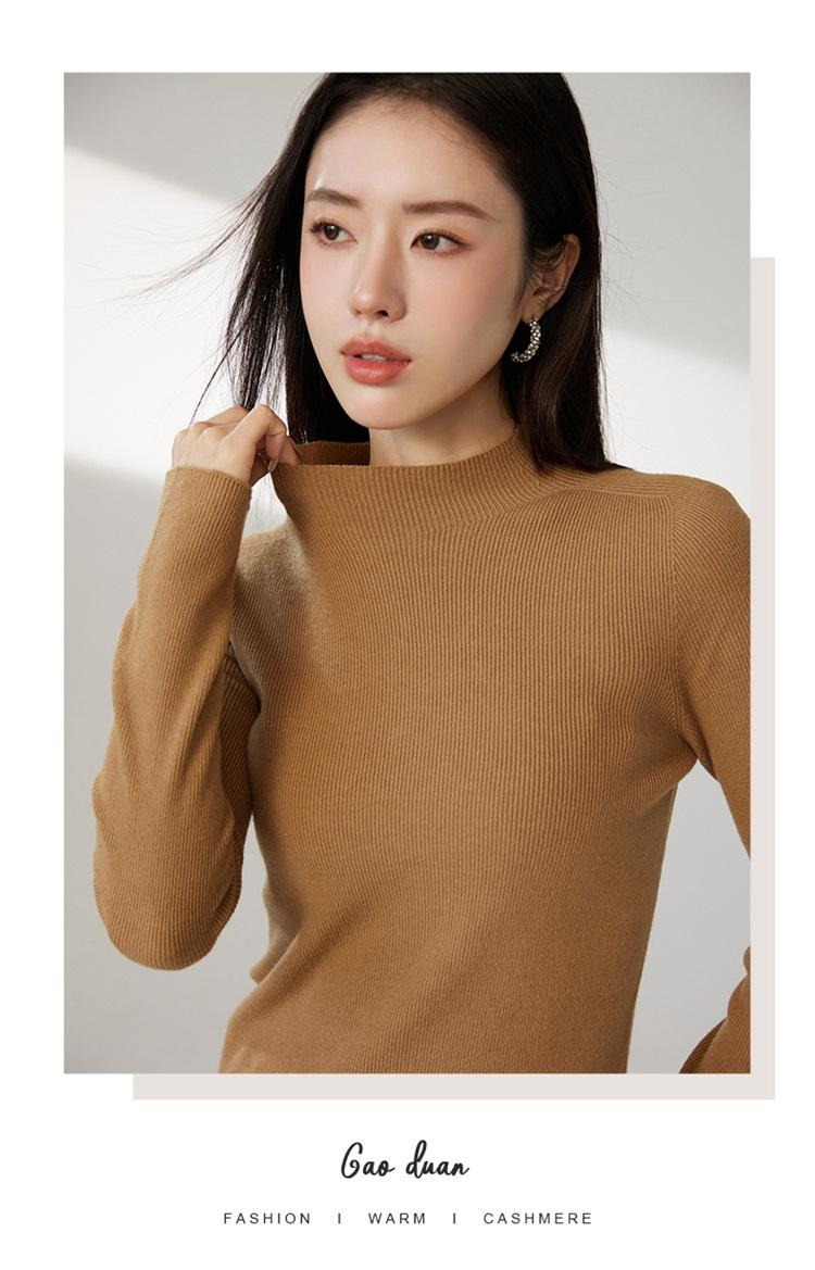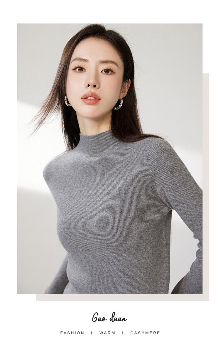 Suéter ajustado de cuello medio alto de manga larga, top de punto irregular, Invierno 2023, suéter corto interior de otoño e invierno