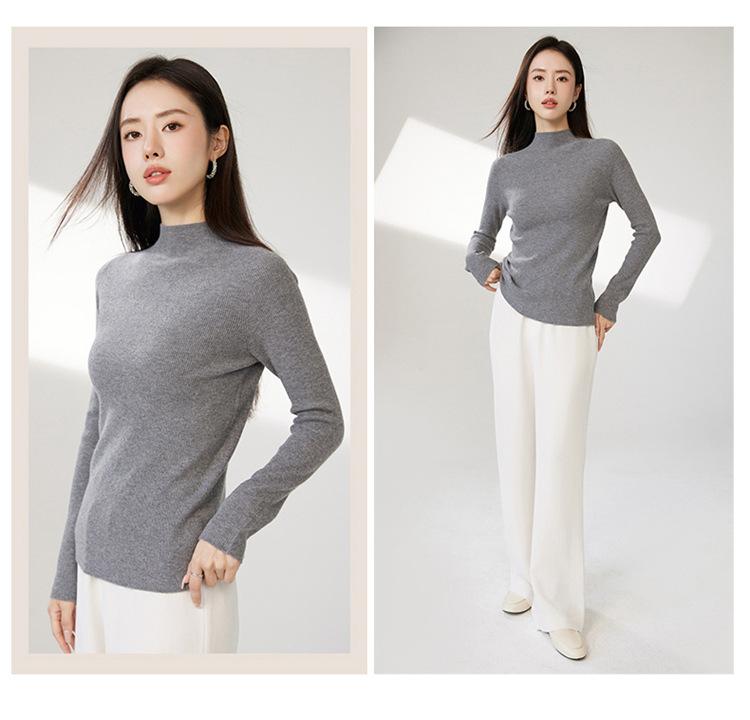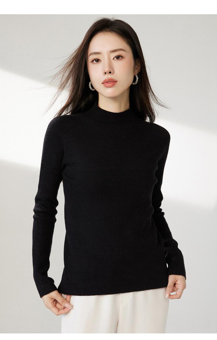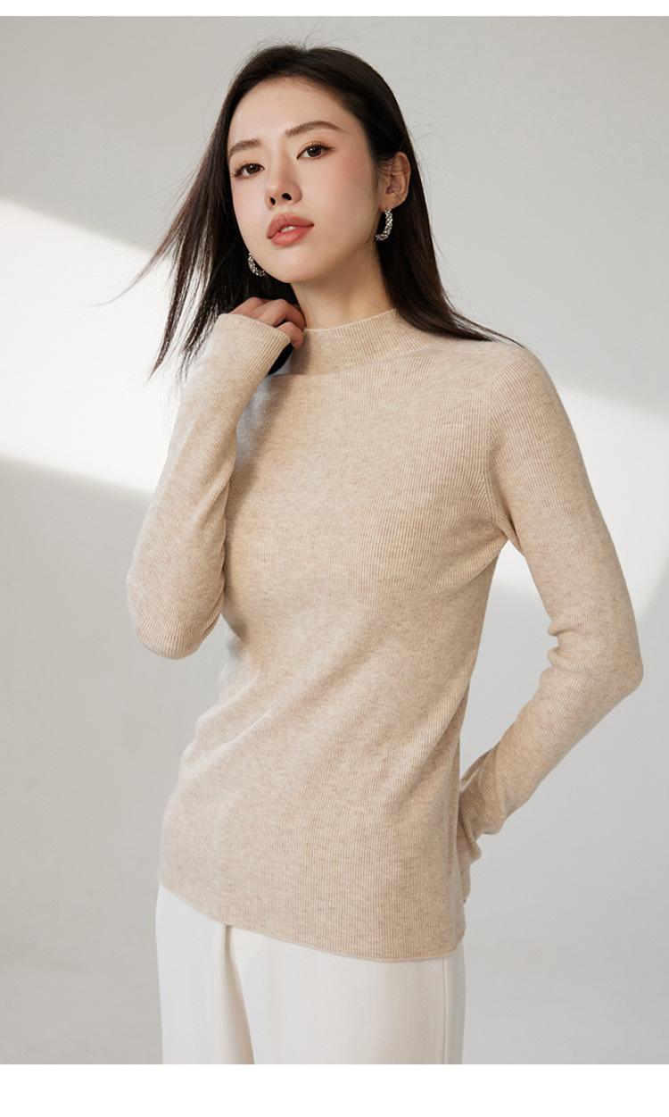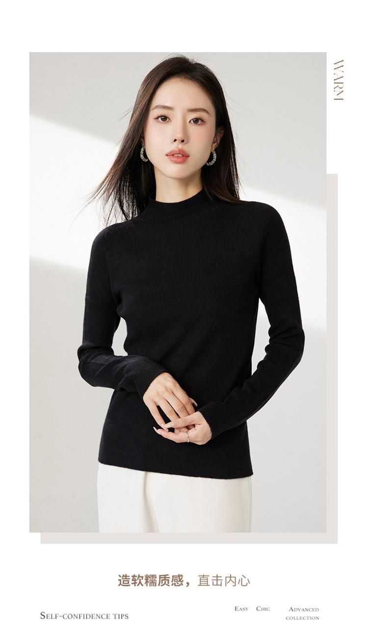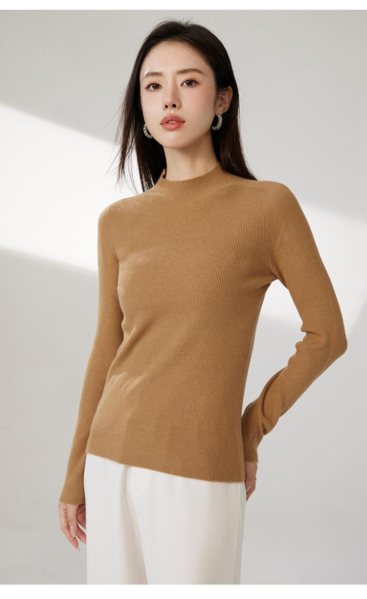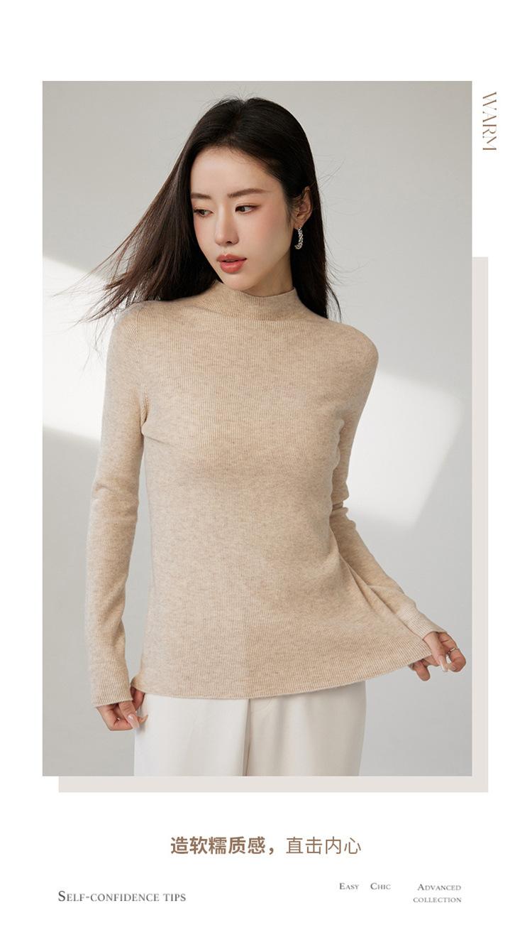Suéter ajustado de cuello medio alto de manga larga, top de punto irregular, Invierno 2023, suéter corto interior de otoño e invierno