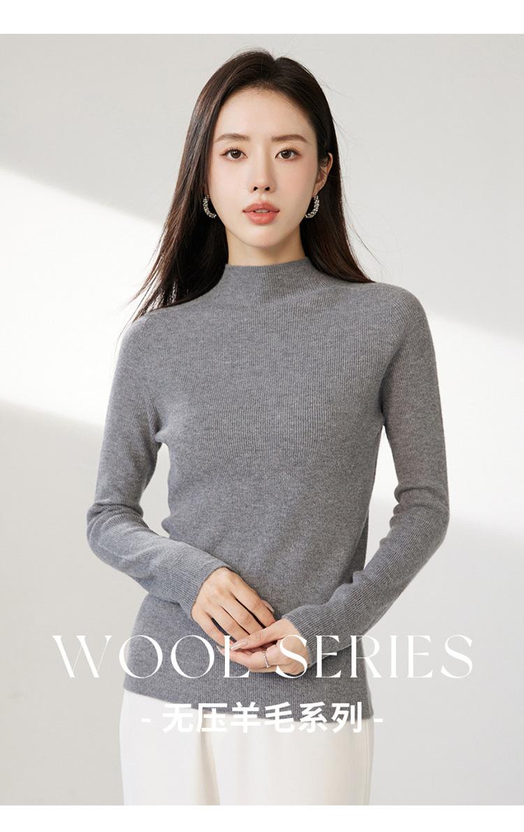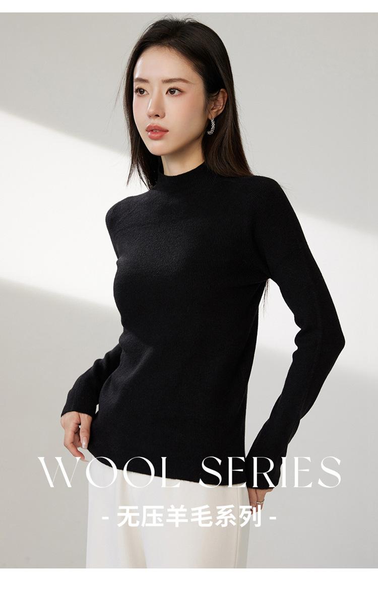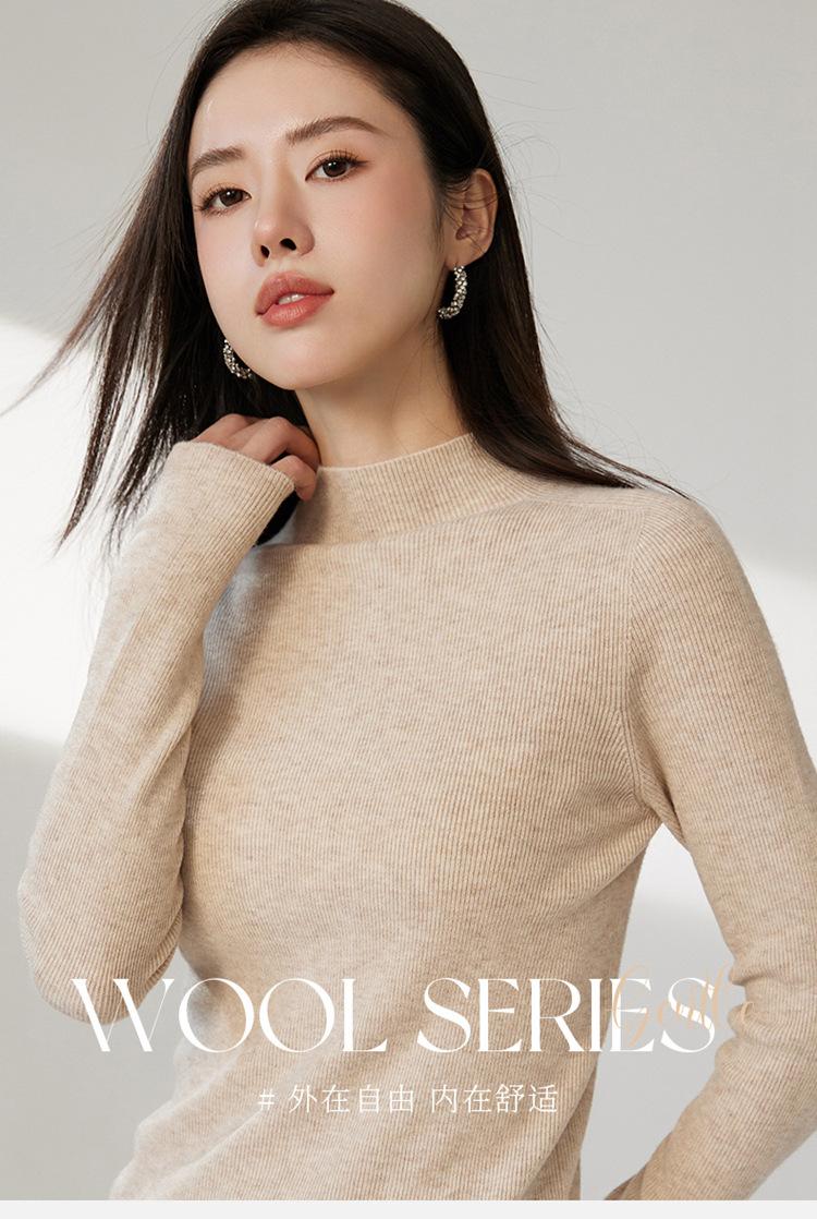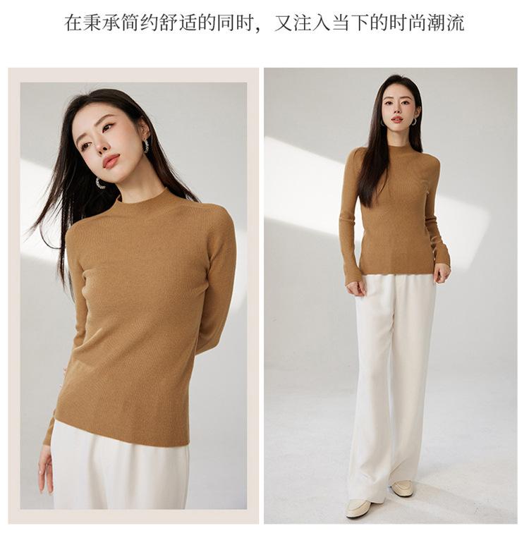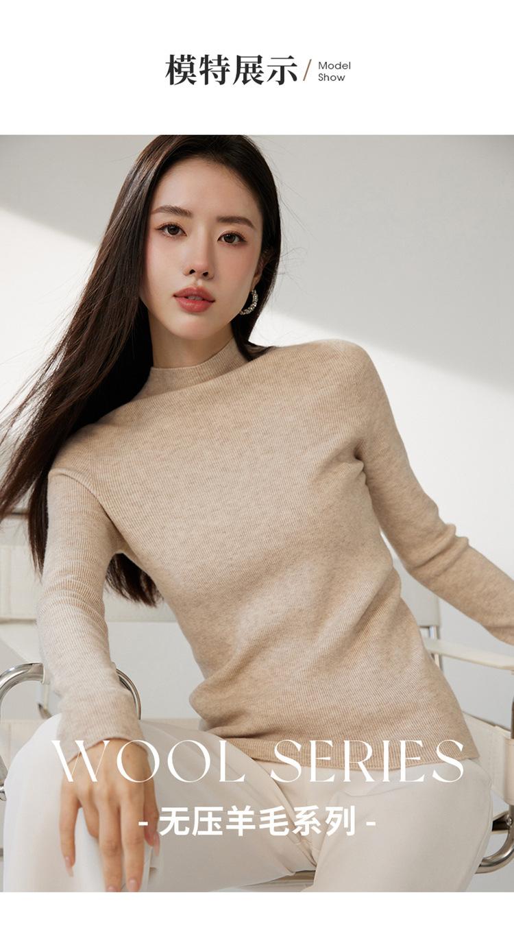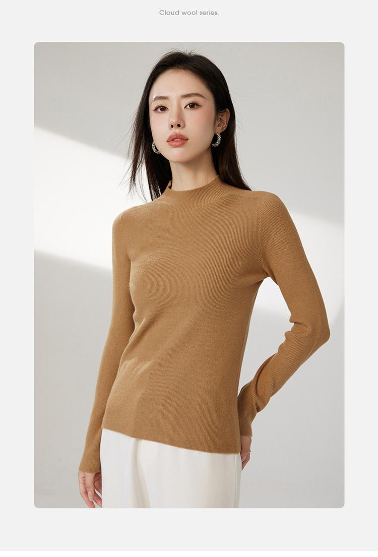 Suéter ajustado de cuello medio alto de manga larga, top de punto irregular, Invierno 2023, suéter corto interior de otoño e invierno