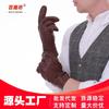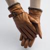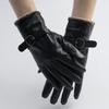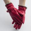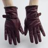 Guantes de Piel de Oveja para Mujer Cuero Genuino para Conducir Guantes de Dedos con Forro Polar Engrosados para Ciclismo Hebilla Guantes de Cuero Cálidos