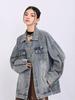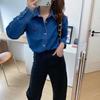 Chaqueta Camisera de Mezclilla Bordada Love para Hombre y Mujer, Camisa Clásica de Manga Larga con Solapa Holgada para Pareja, Moderna y Versátil para Uso Exterior