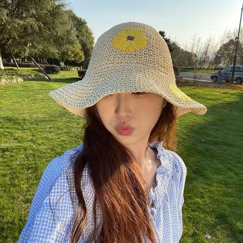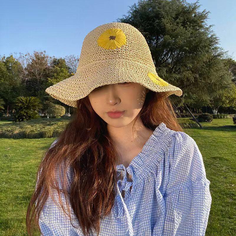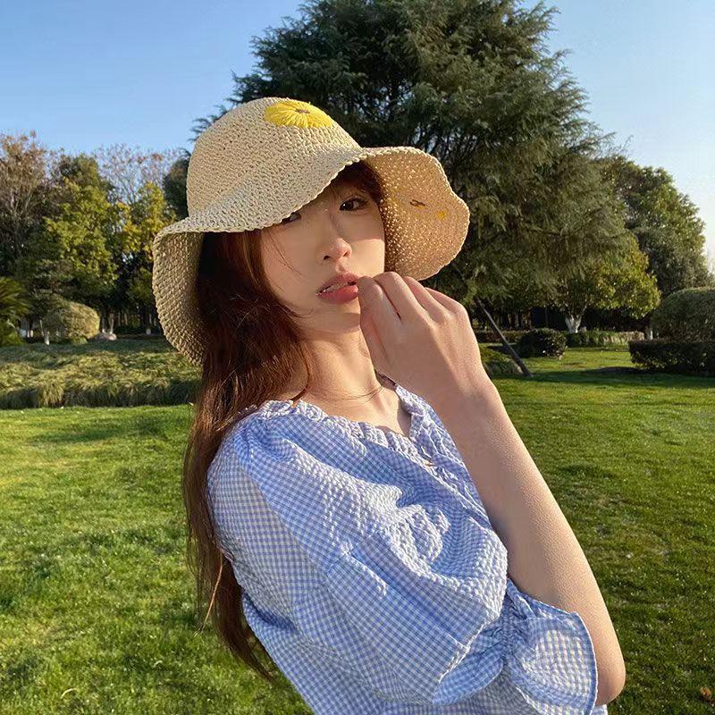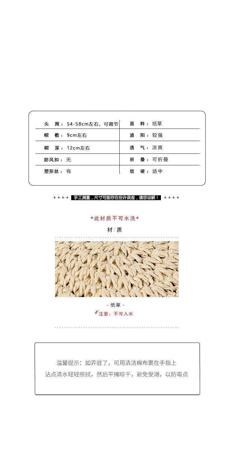 Sombrero para Mujer Verano Nuevo Sombrero de Paja de Ala Ancha Verano Plegable Sombrero de Pescador Sombrero de Protección Solar para la Playa Sombrero de Sol para la Playa