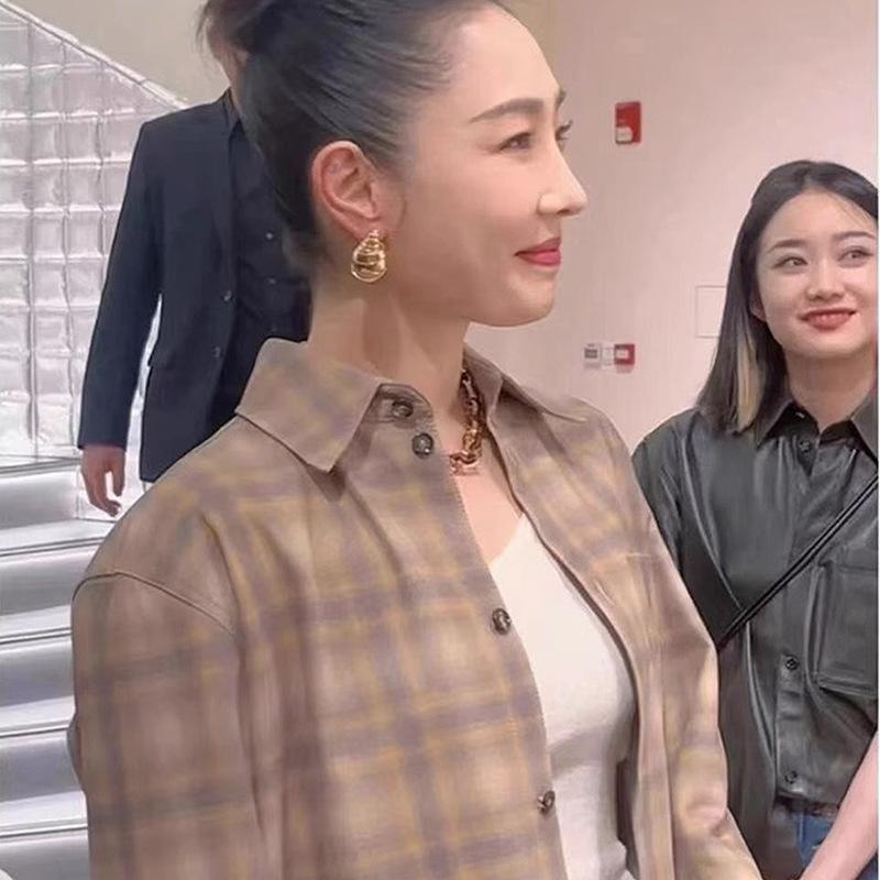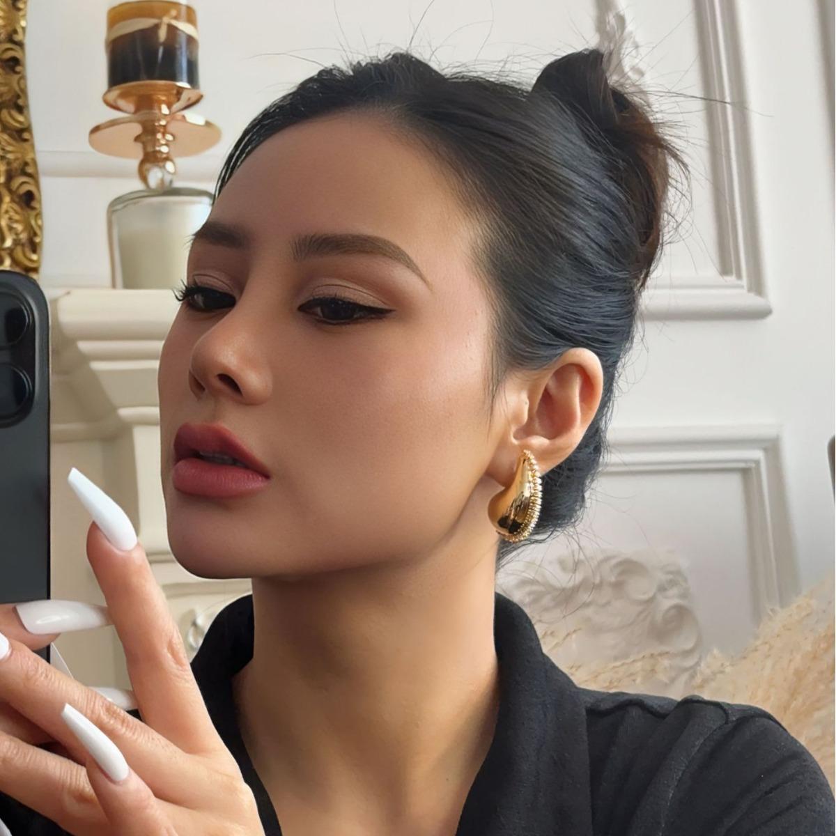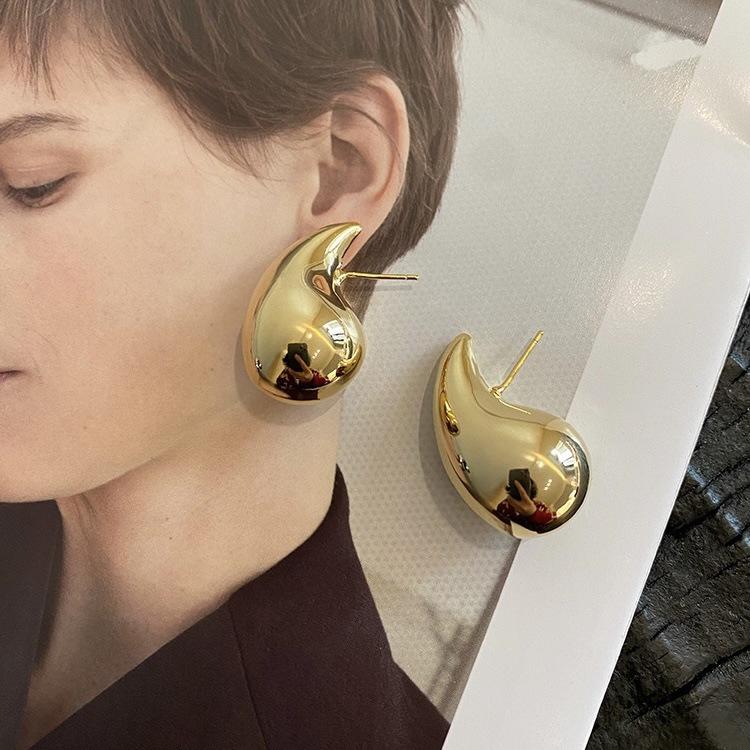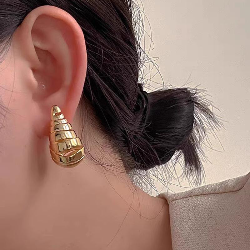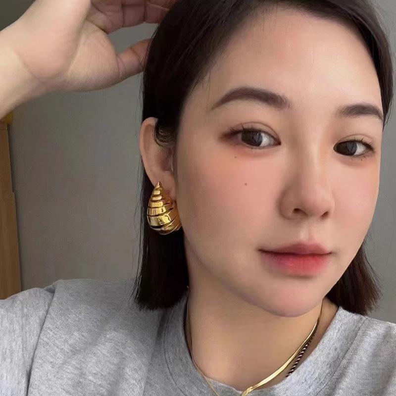 Pendientes colgantes de oro populares de Amazon, pendientes de metal huecos y curvados exagerados europeos y americanos, joyería de oreja personalizada de oro