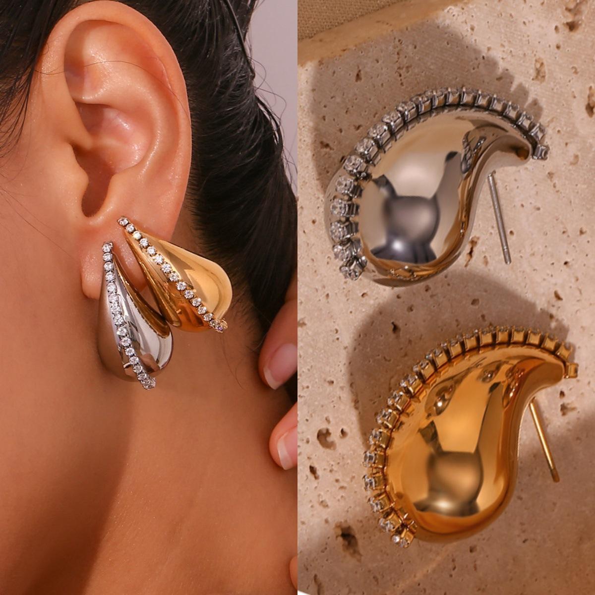 Spiral hollow earrings-Gold, Spiral hollow earrings-Silver, D0412 glossy earrings-Gold, D0412 glossy earrings-...